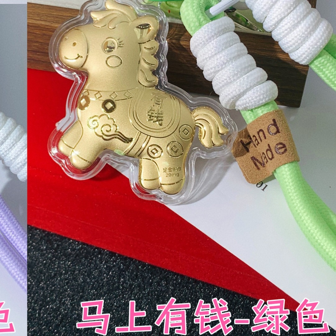 2026马年足金999马上有钱手机链挂绳黄金车钥匙扣包包挂件送女友