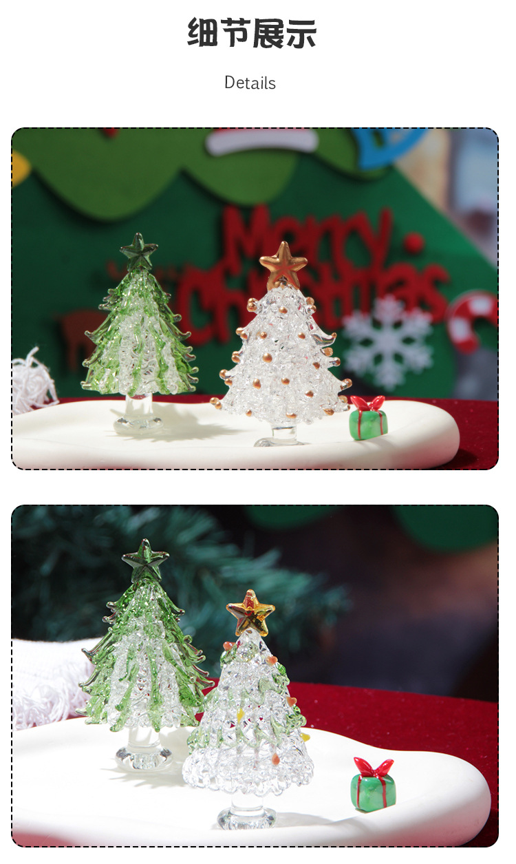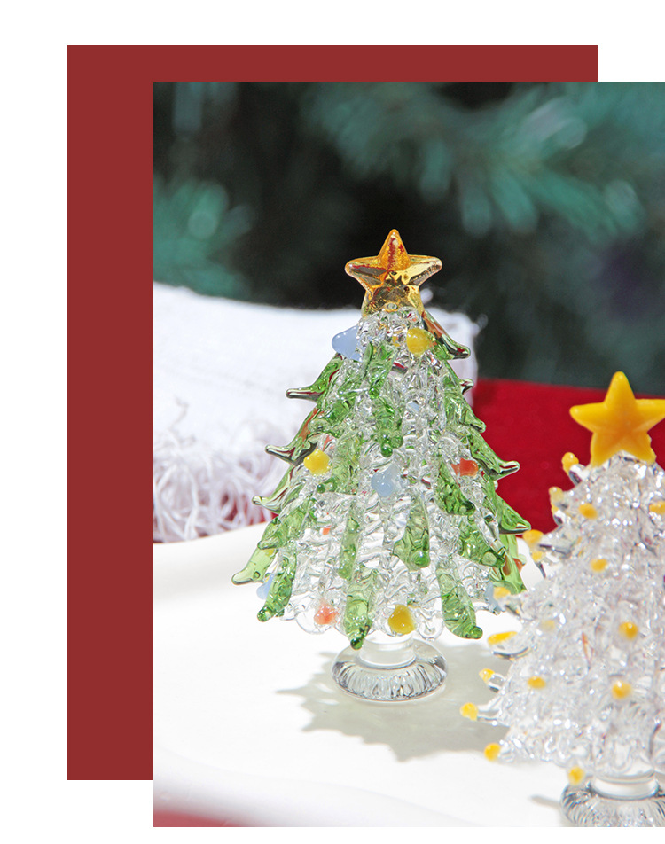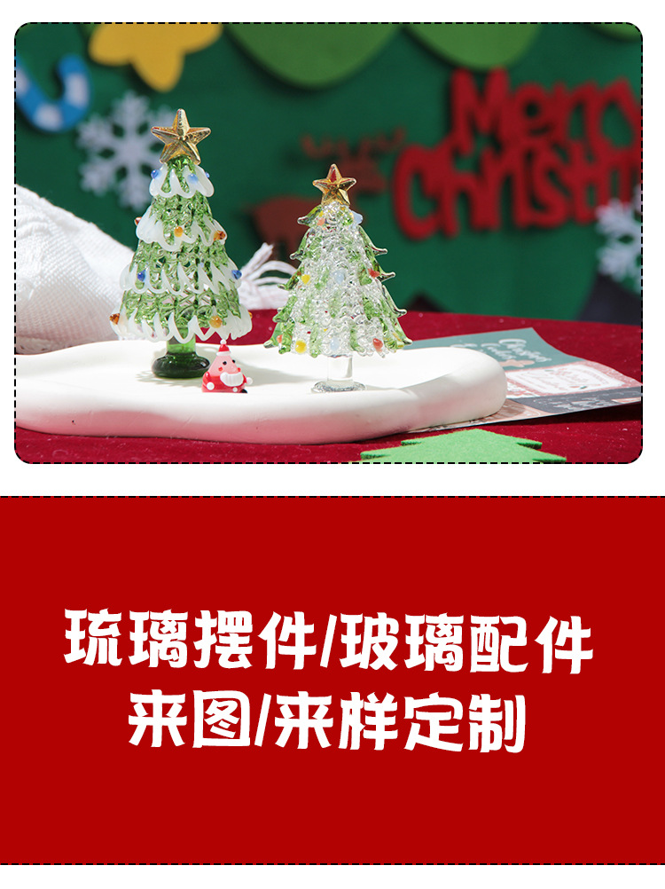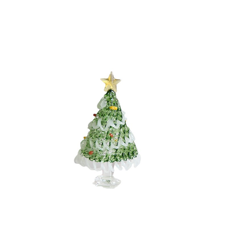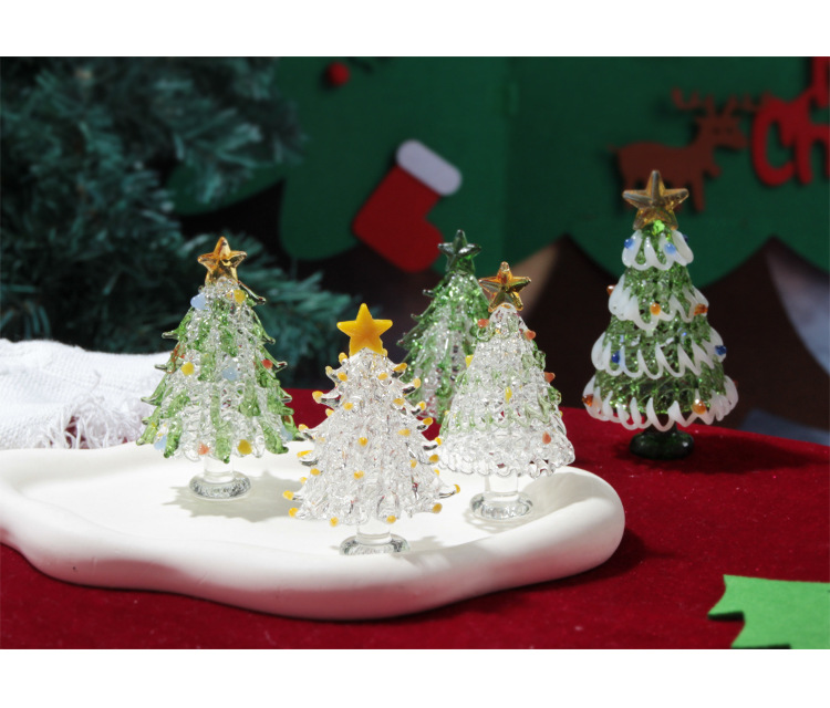 淄博琉璃拉丝圣诞树摆件桌面装饰手工玻璃圣诞节氛围礼物车载饰品