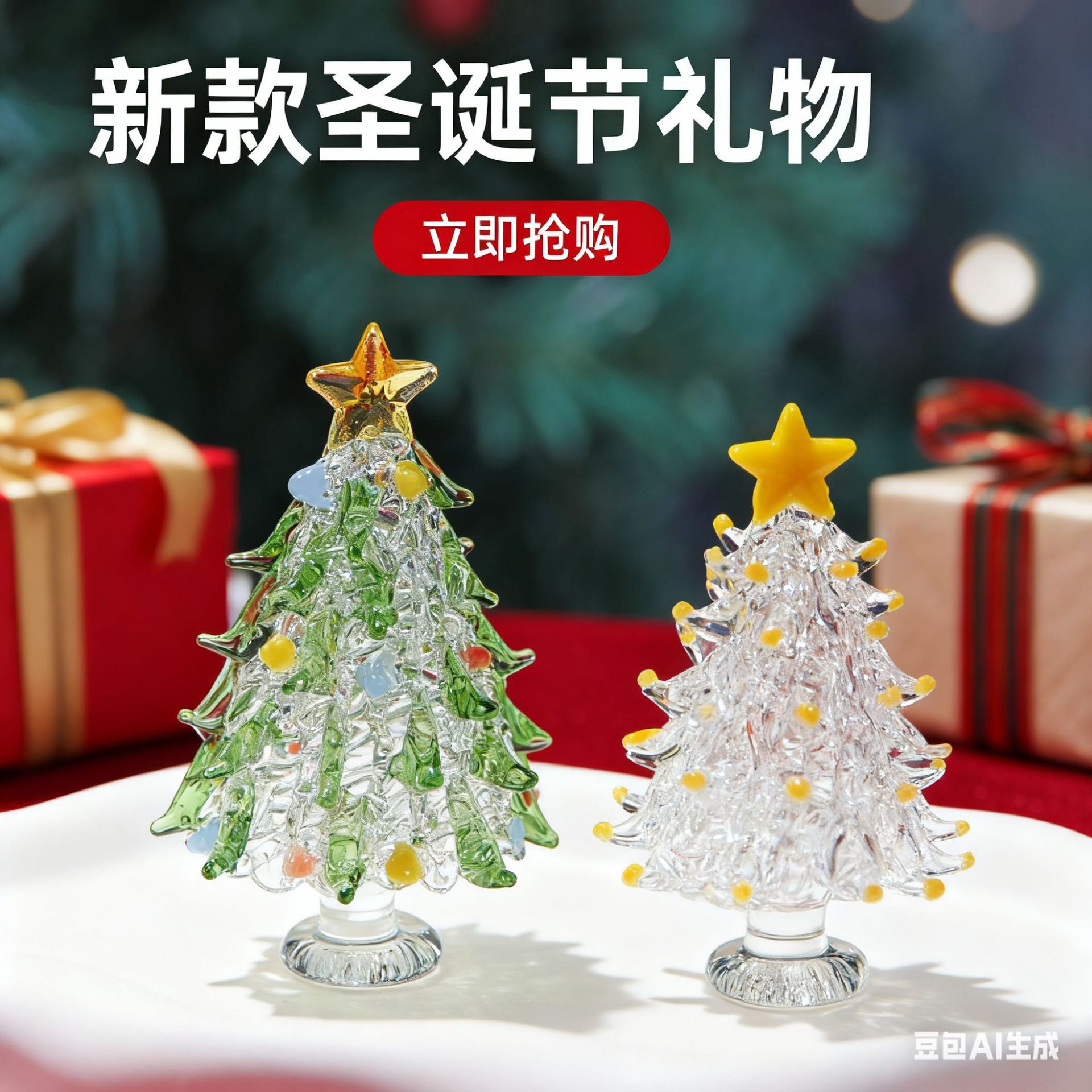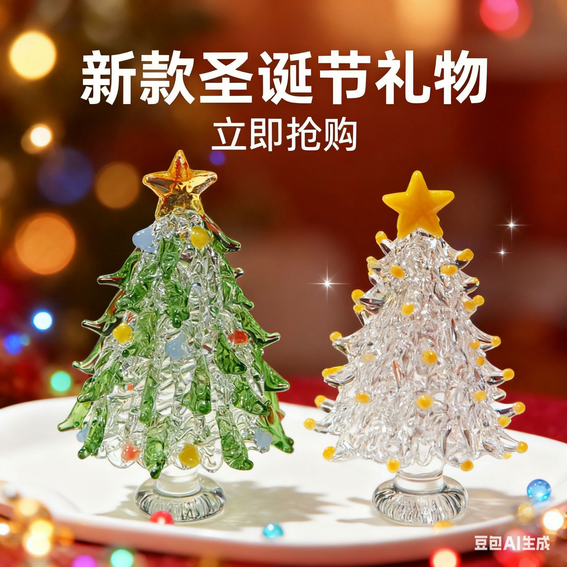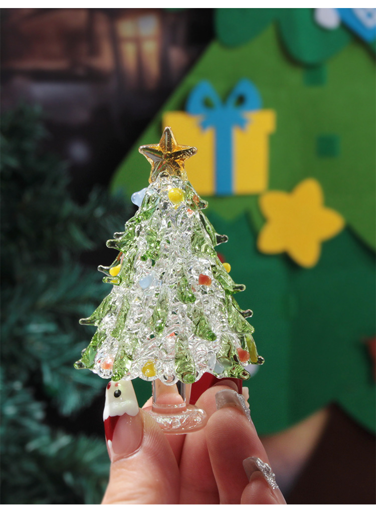 淄博琉璃拉丝圣诞树摆件桌面装饰手工玻璃圣诞节氛围礼物车载饰品