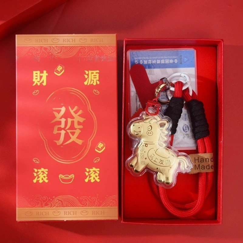 足金999马上有钱钥匙扣黄金小马上暴富挂件盒装保险会销礼品批发
