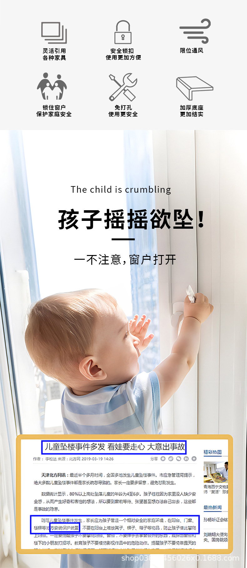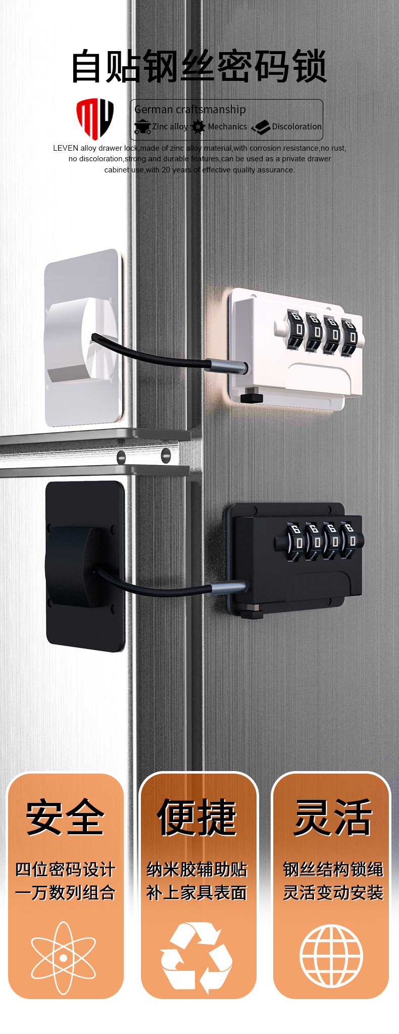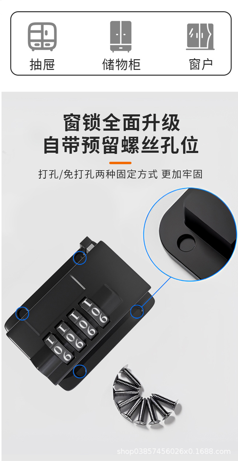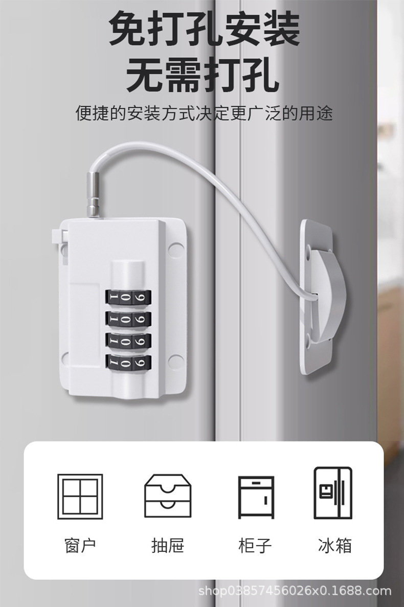 免打孔儿童密码安全锁柜门窗户防盗密码锁冰箱锁柜抽屉明装密码锁