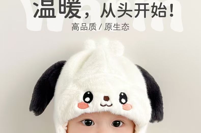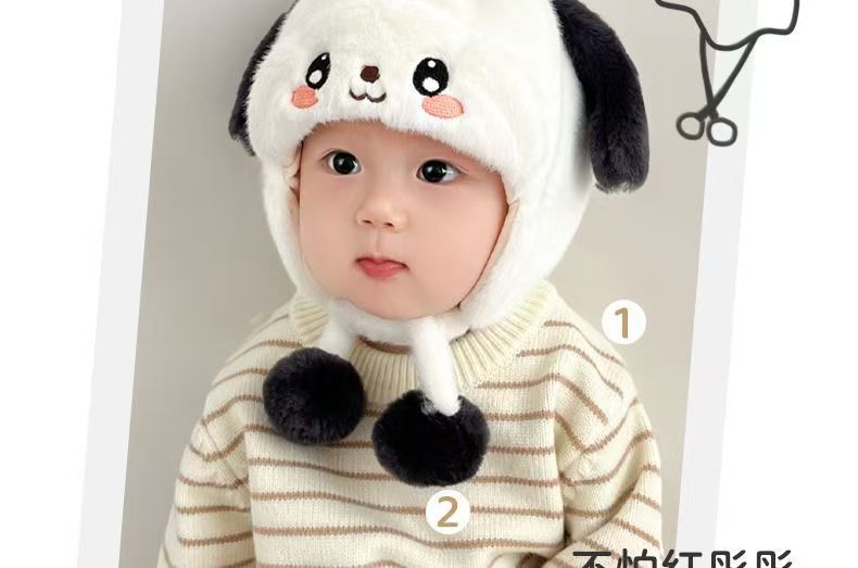 婴儿帽子秋冬季宝宝护耳毛绒帽婴幼儿可爱毛线帽冬帽加厚保暖冬季