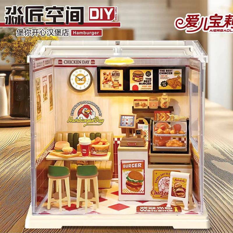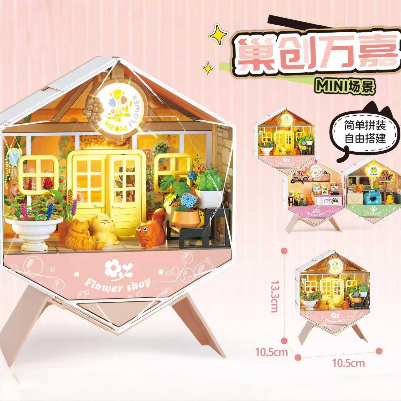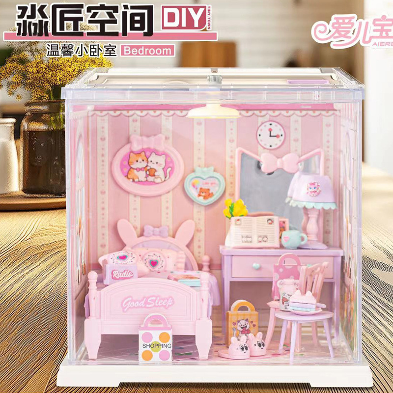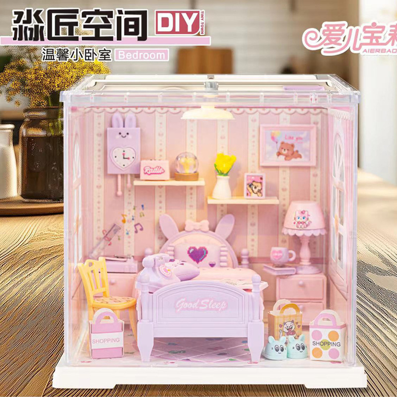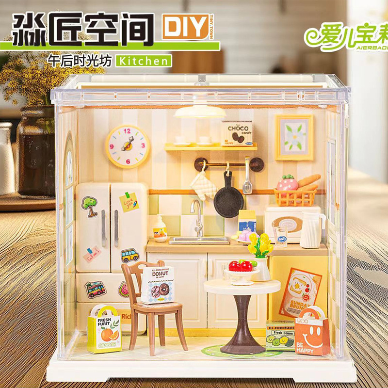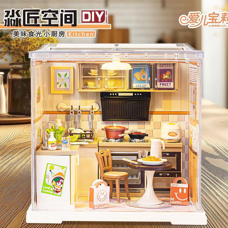 diy小屋手工拼装迷你房子厨房卧室微缩立体模型积木玩具女孩礼物