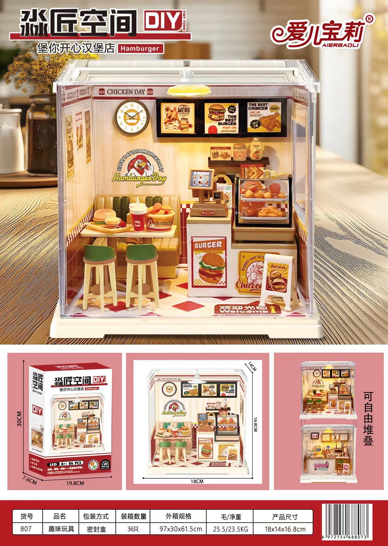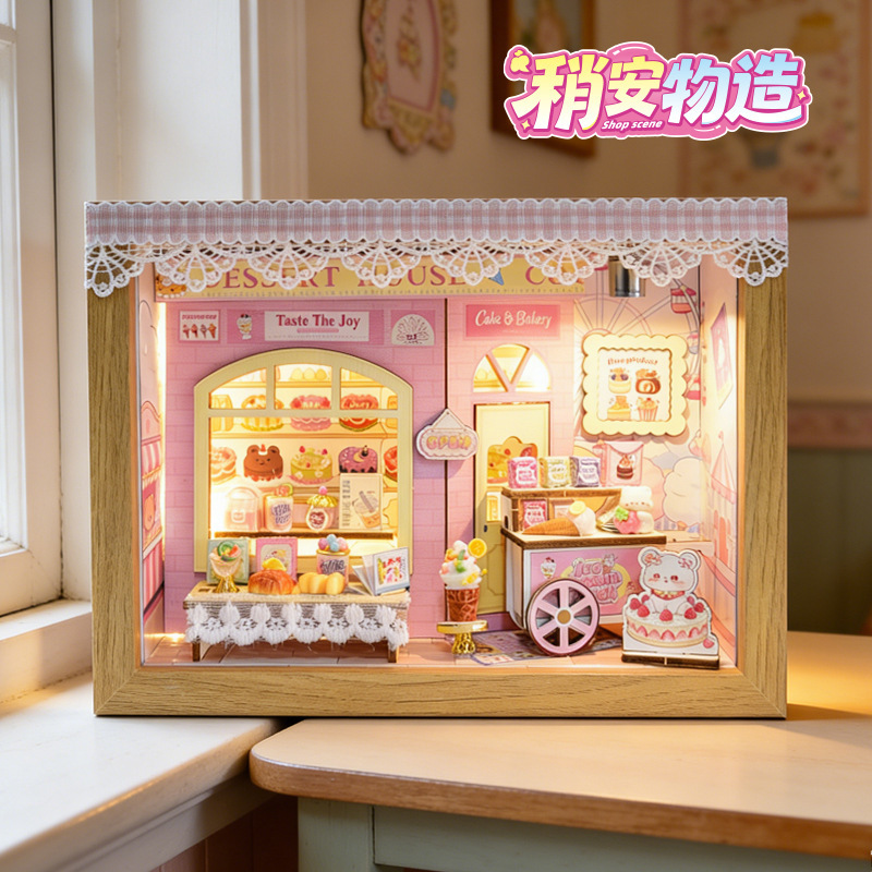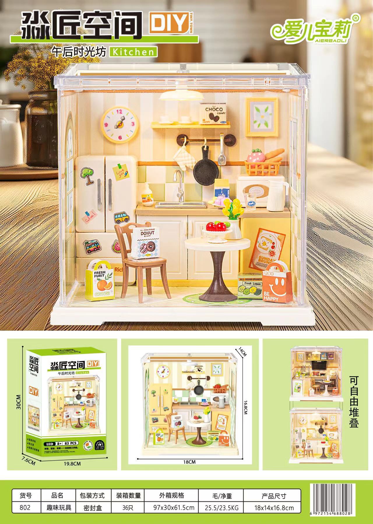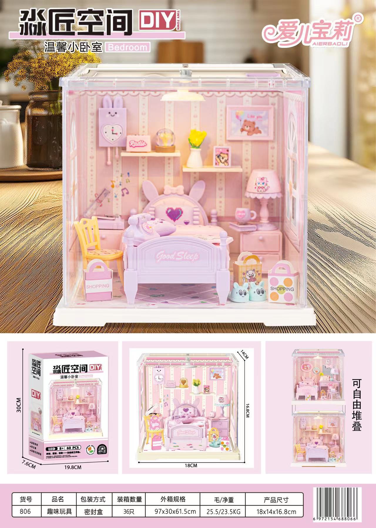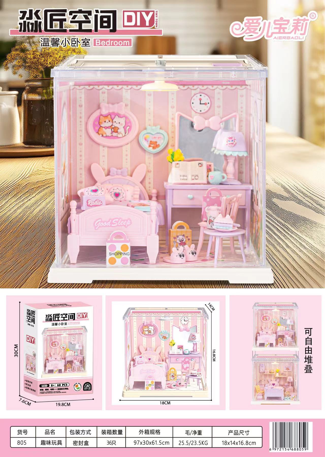 diy小屋手工拼装迷你房子厨房卧室微缩立体模型积木玩具女孩礼物