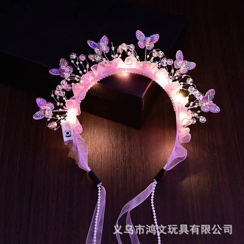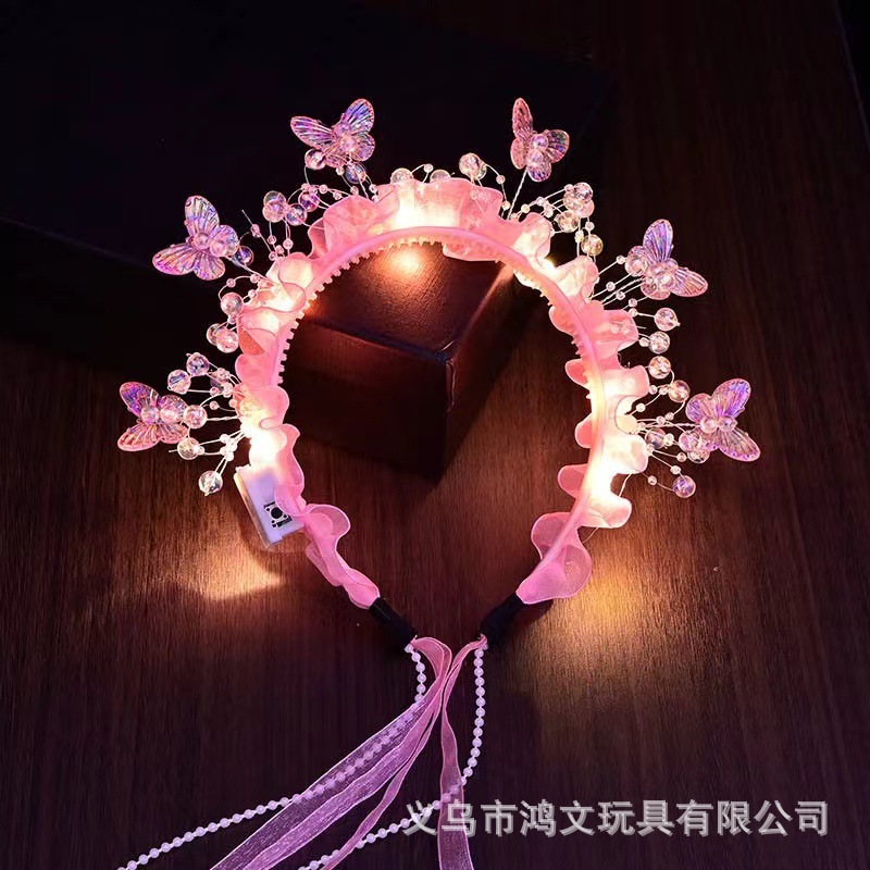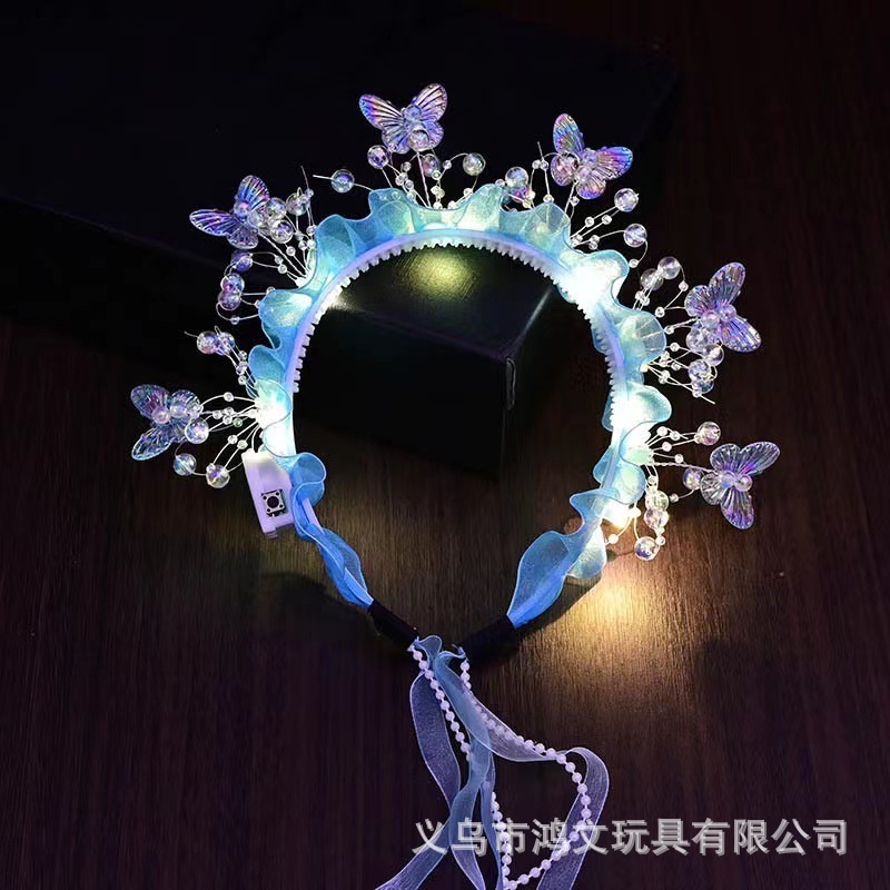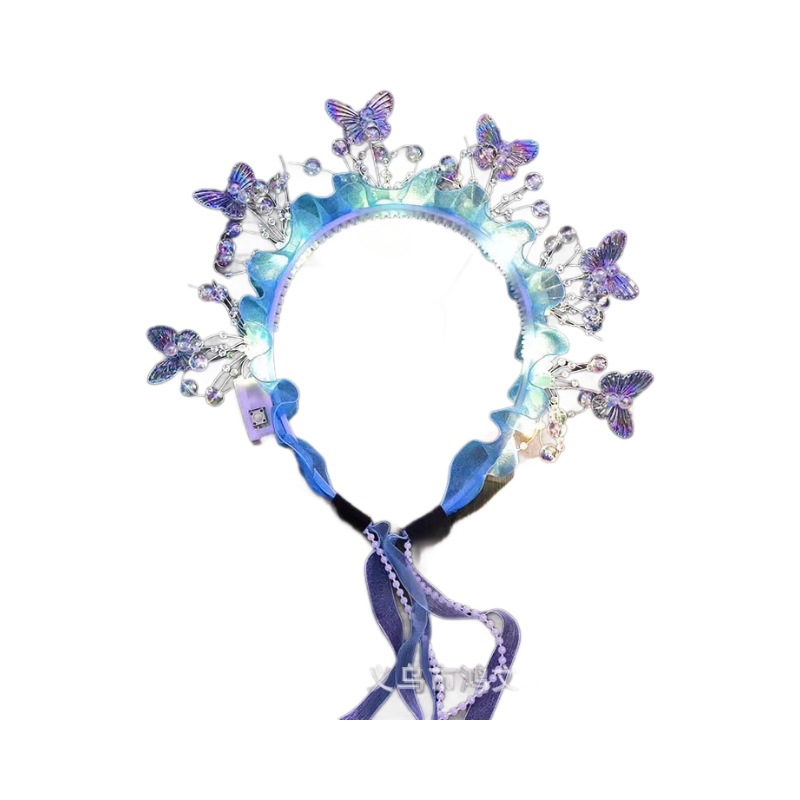 夏日热销新款簪花发光发箍成品炫彩蝴蝶仙子生日礼物女童飘带头饰