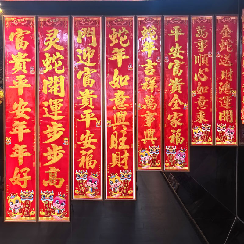 对联都是独立包装的,有袋装和盒装的。植绒对联和书法都是盒装的,款式随机发