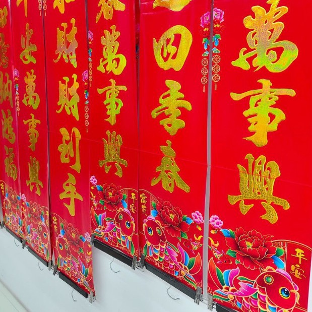 对联都是独立包装的,植绒对联和书法都是盒装的,款式随机发