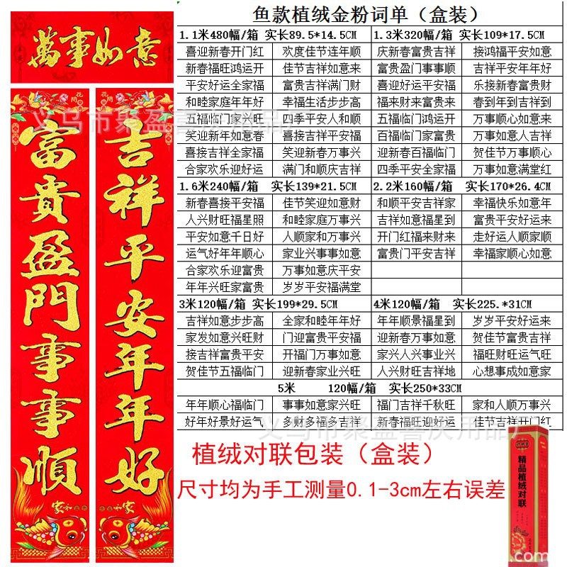 对联都是独立包装的,植绒对联和书法都是盒装的,款式随机发