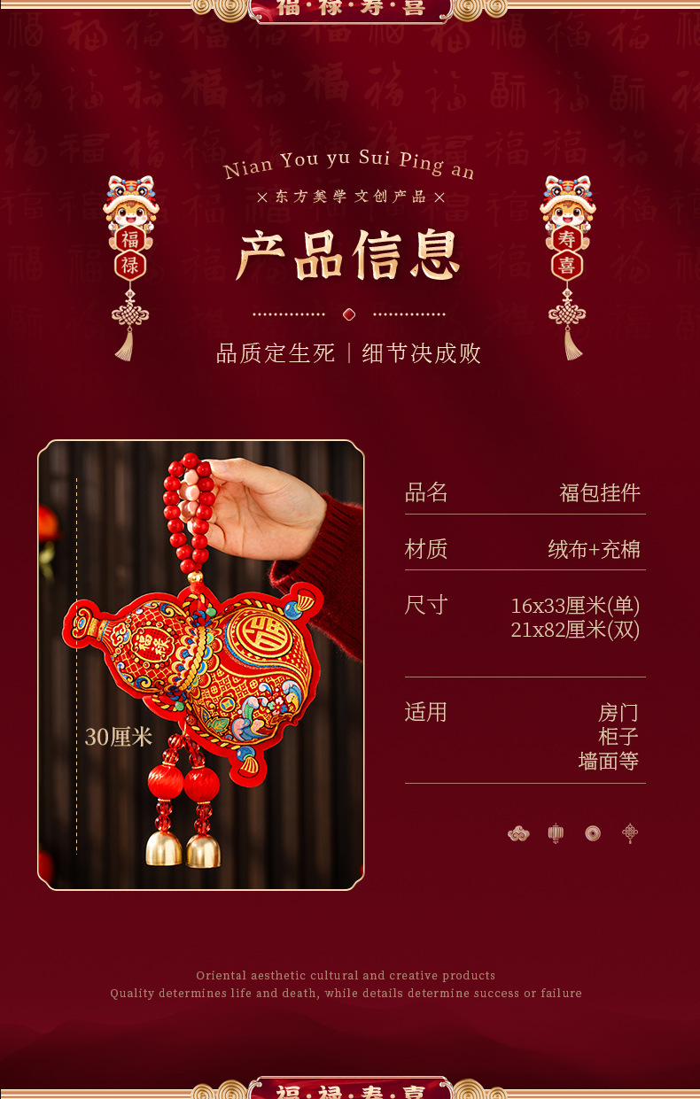 新年福字包挂件2026新款葫芦福禄挂件马年过年春节小福袋挂饰装扮