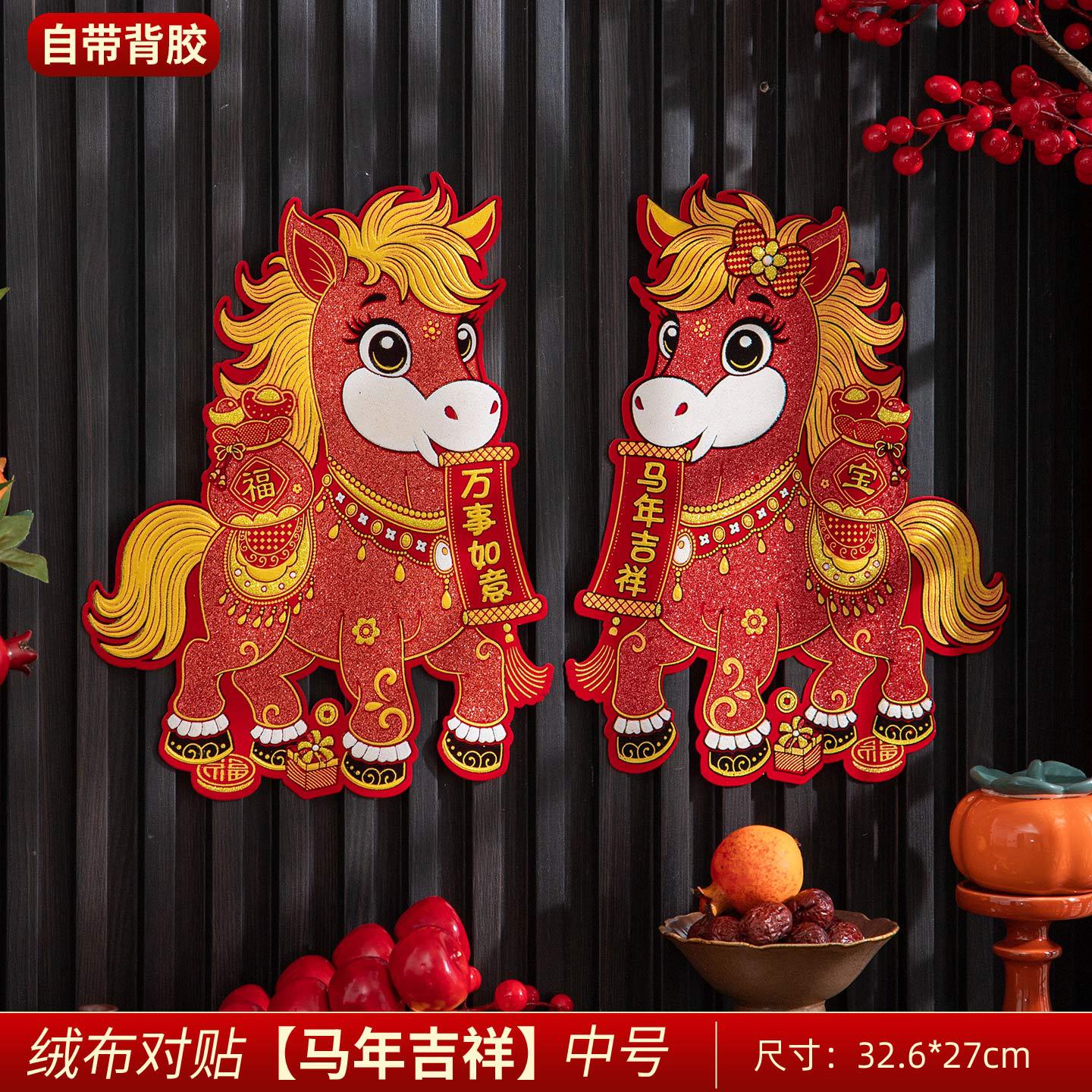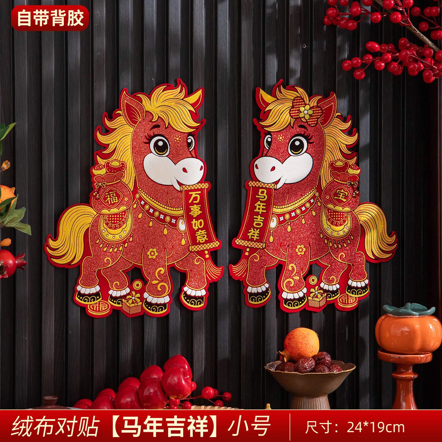 春节对联2026马年新款家用绒布卡通春联大门装饰门联新年过年年货