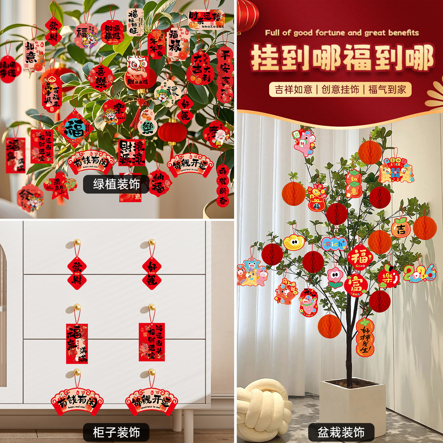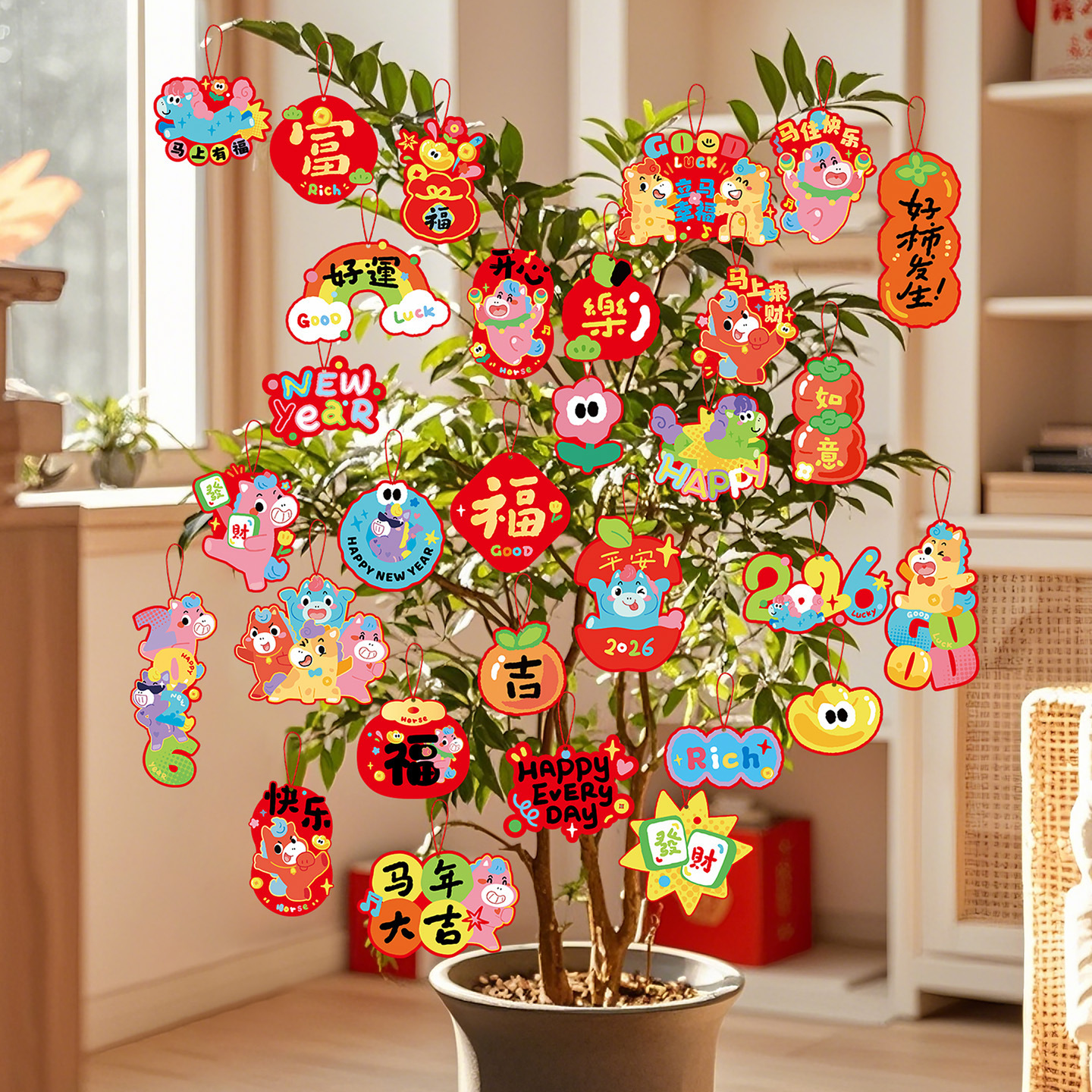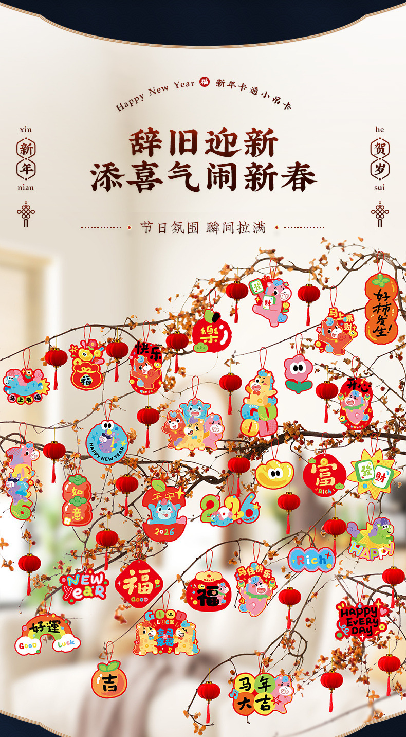 2026马年福字吊卡小挂饰春节过年客厅柜子盆栽绿植挂件新年装饰品
