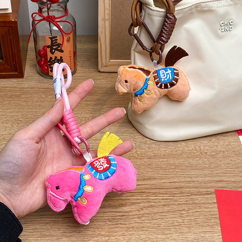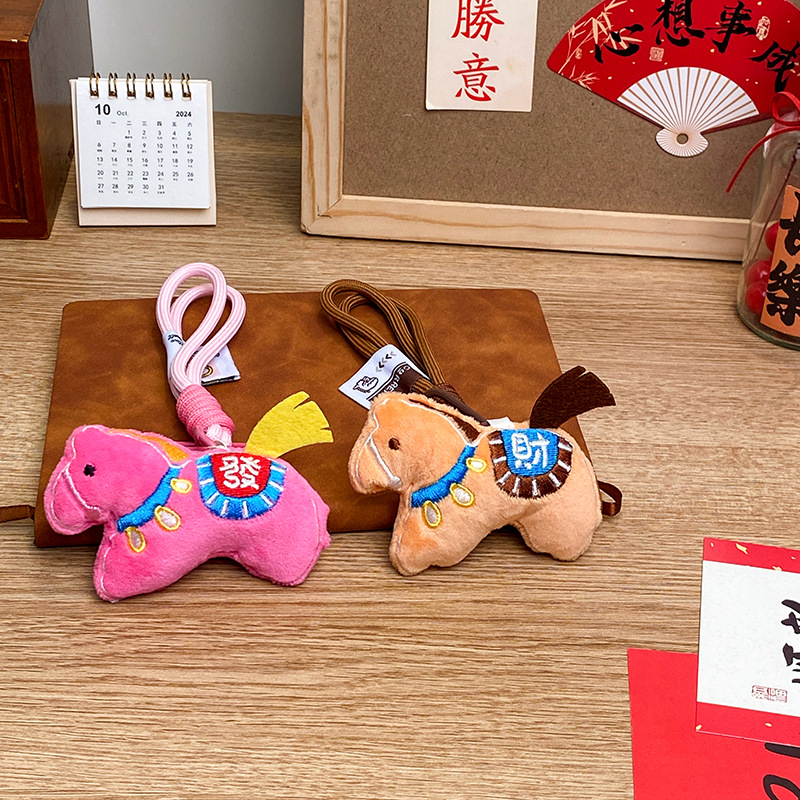 正版马上发财毛绒小马钥匙扣学生书包挂件小饰品马年车钥匙链批发