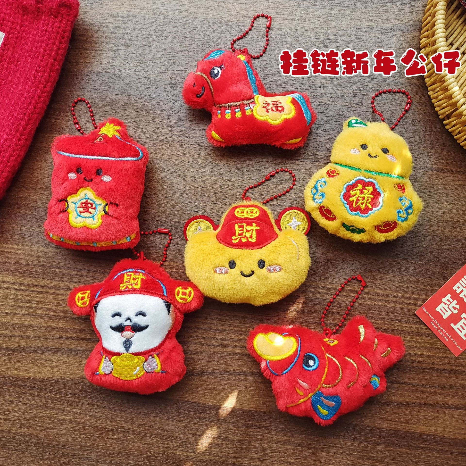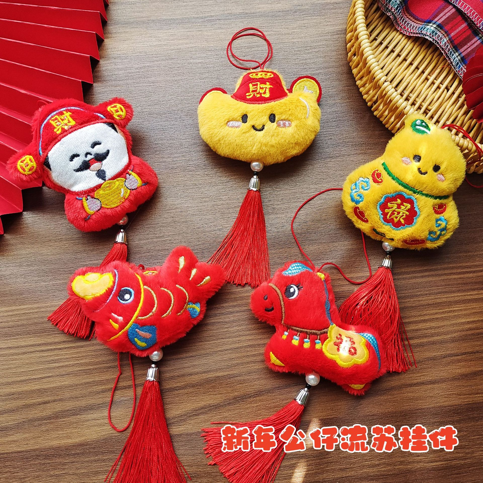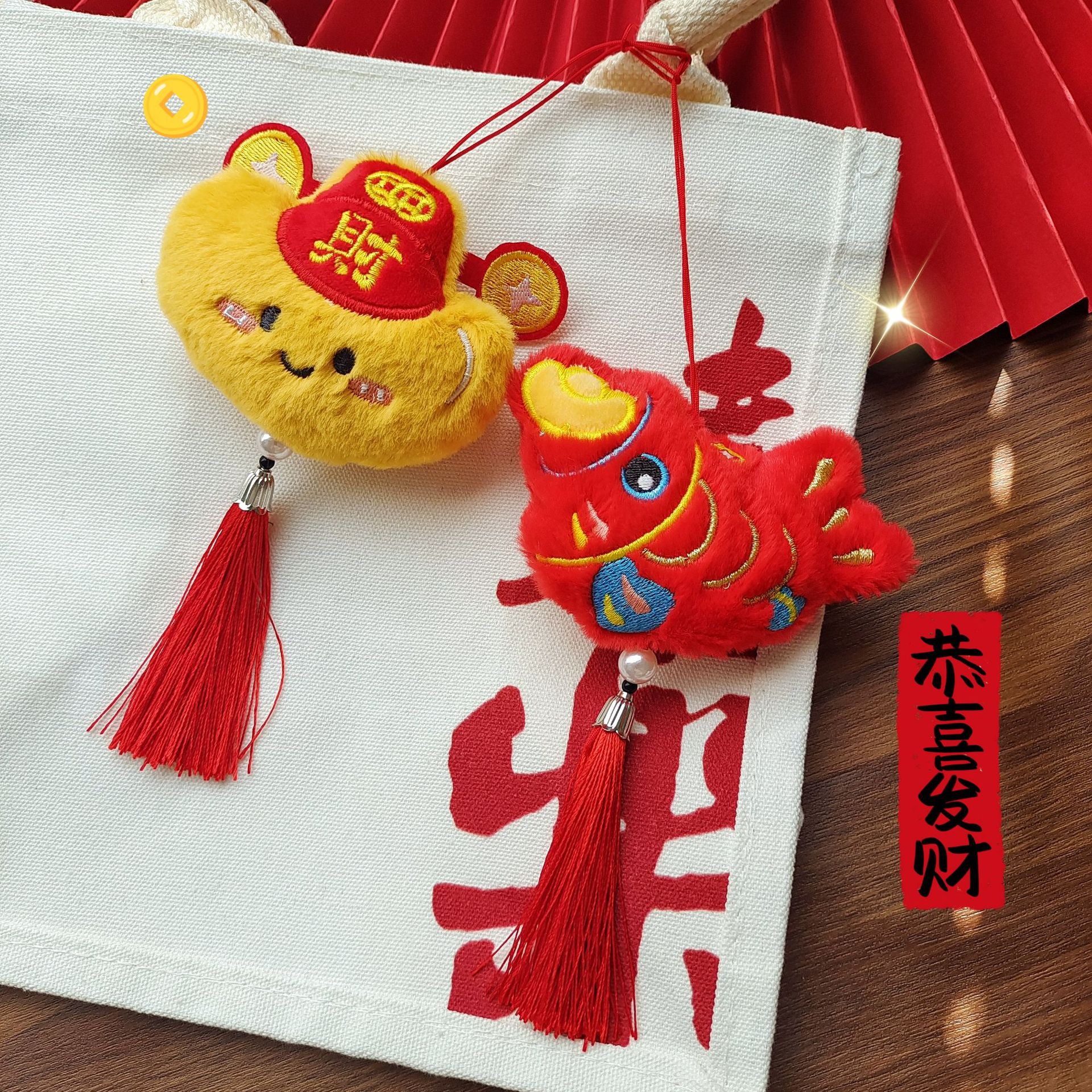原创新年款节日公仔挂饰国风喜庆财神元宝祝福玩偶流苏装饰小挂件