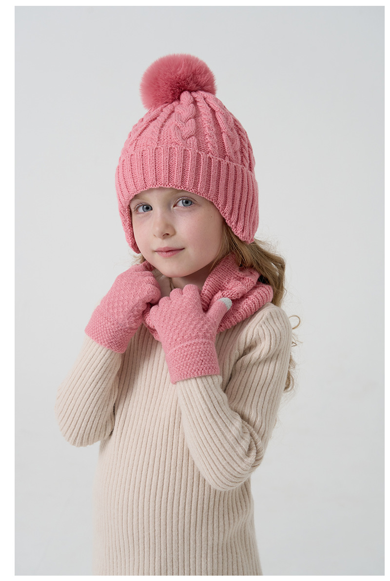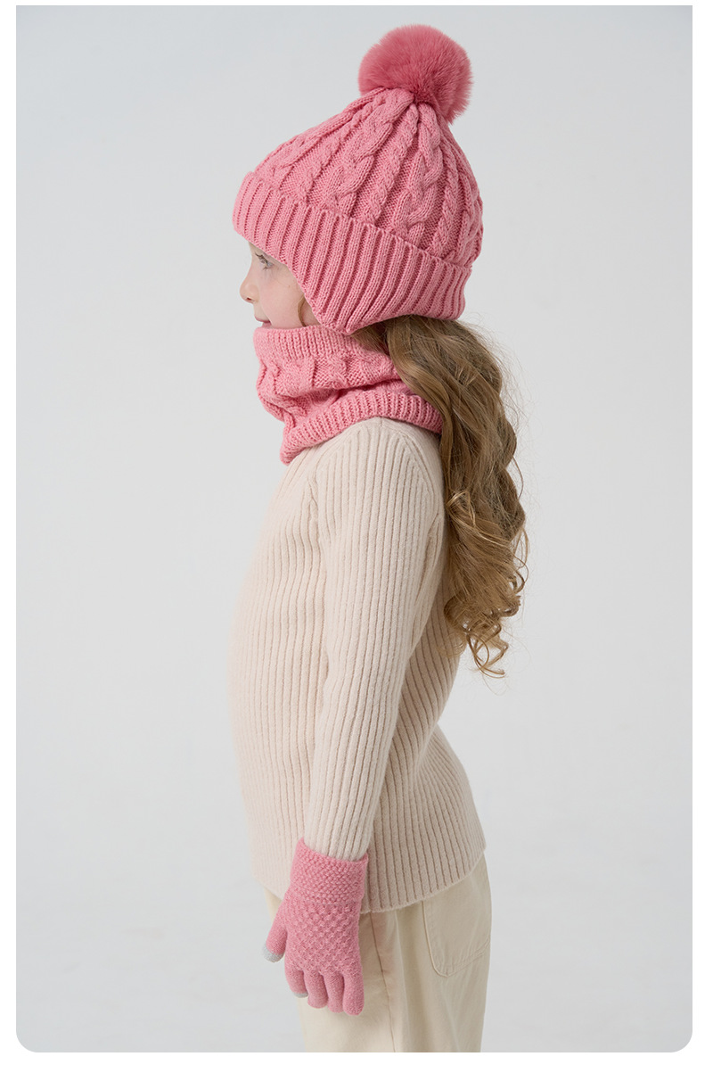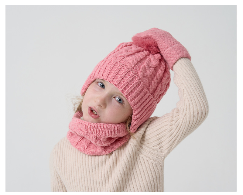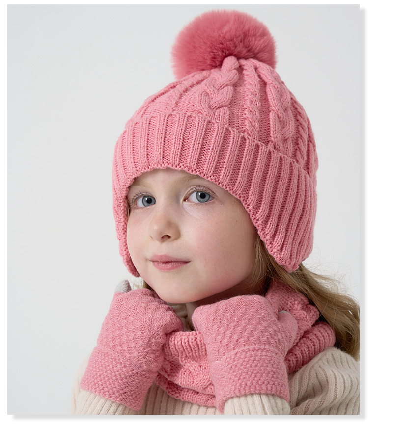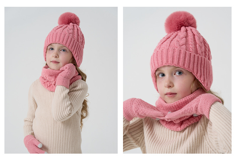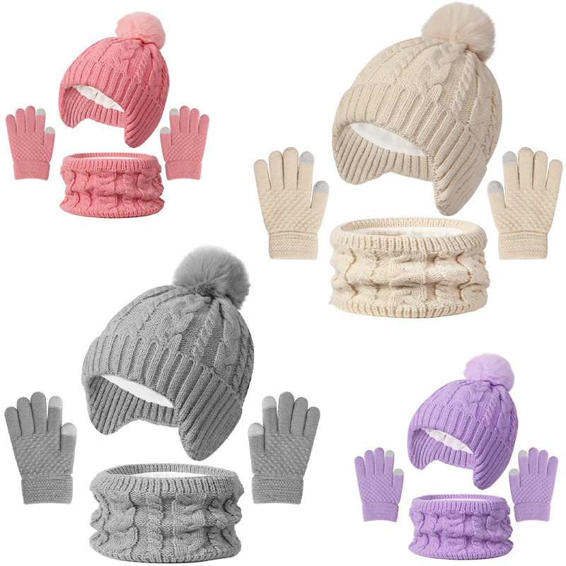 跨境新款欧美儿童帽子围巾手套三件套秋冬加绒加厚单球宝宝帽子