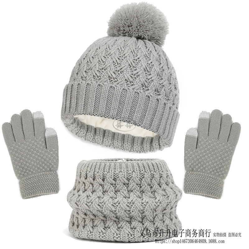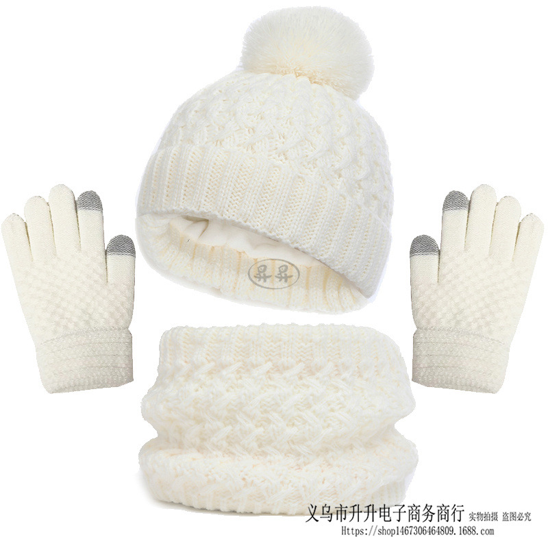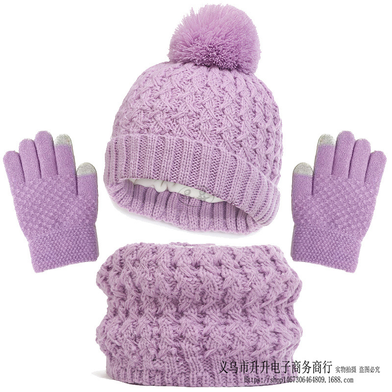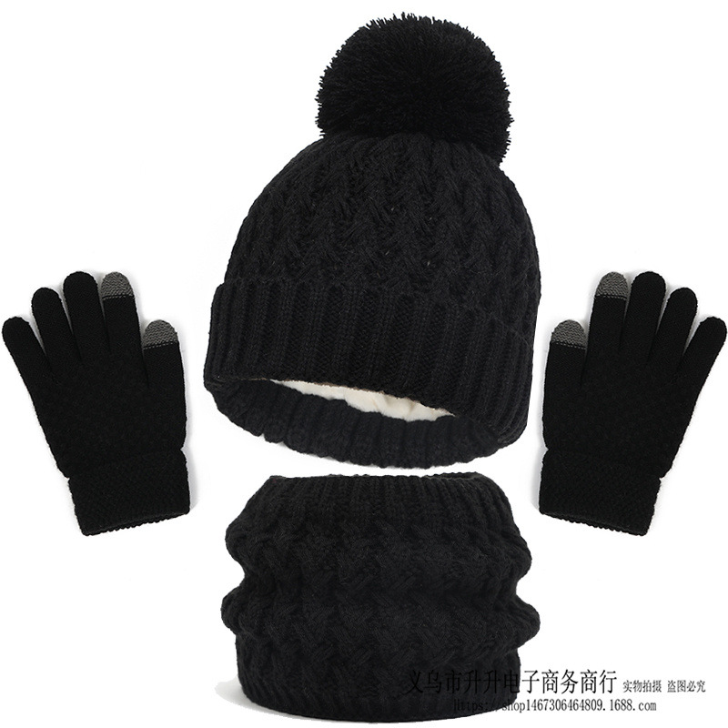 跨境新款欧美儿童帽子围巾手套三件套秋冬加绒加厚单球宝宝帽子