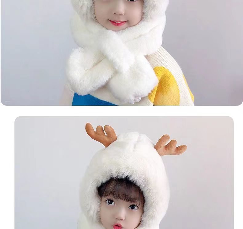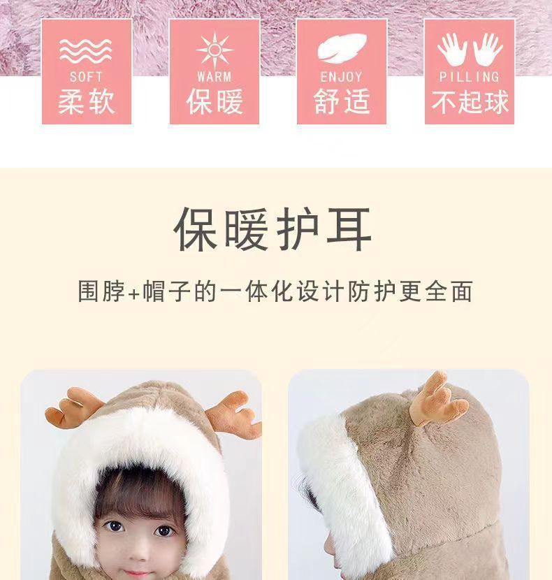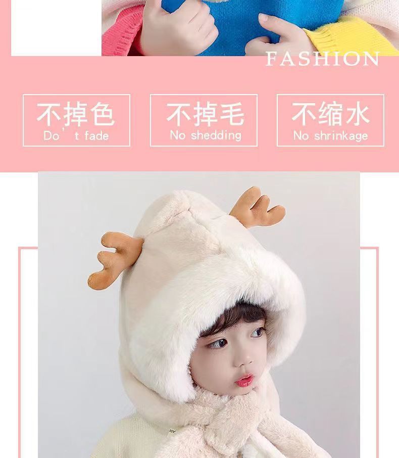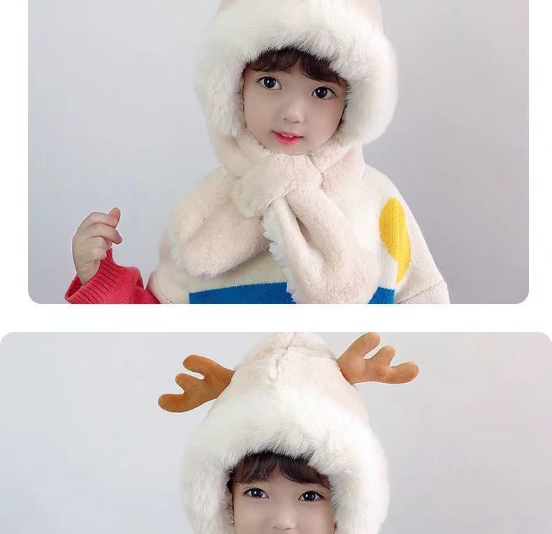 儿童帽子冬季三件套宝宝加绒手套超厚男女童冬天保暖帽子围巾一体