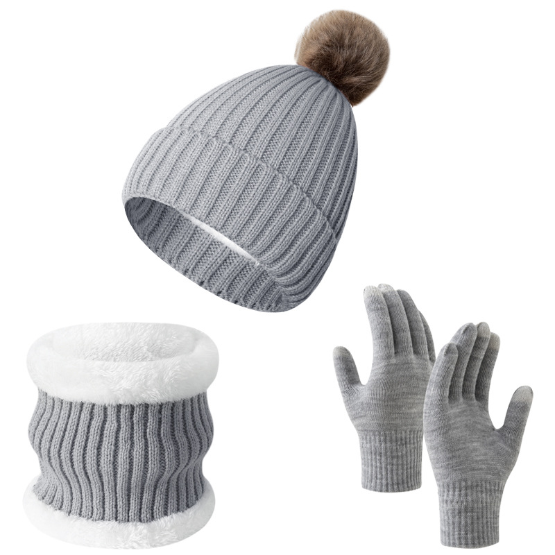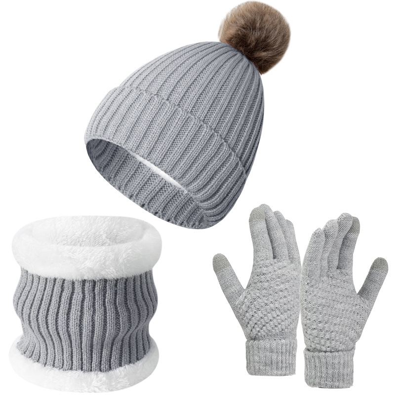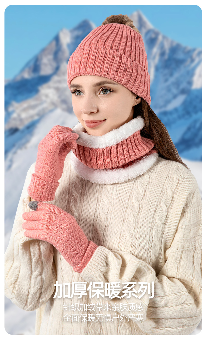 跨境外贸男女针织毛线保暖加绒加厚冬季围巾手套帽子围脖三件套装