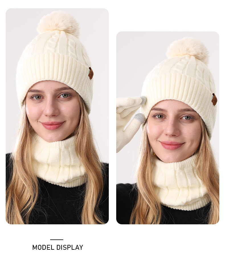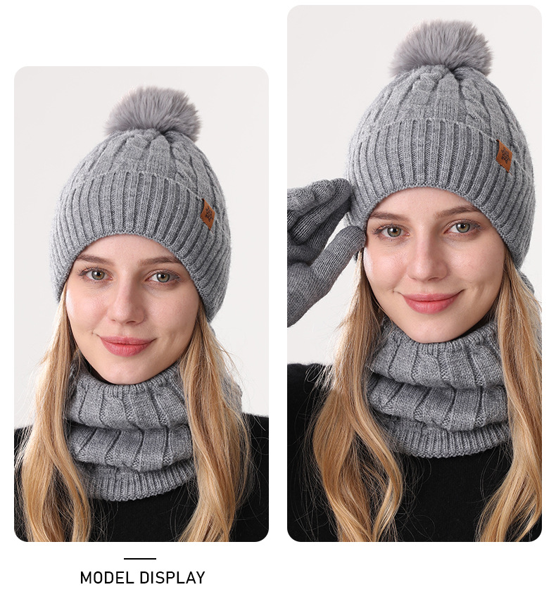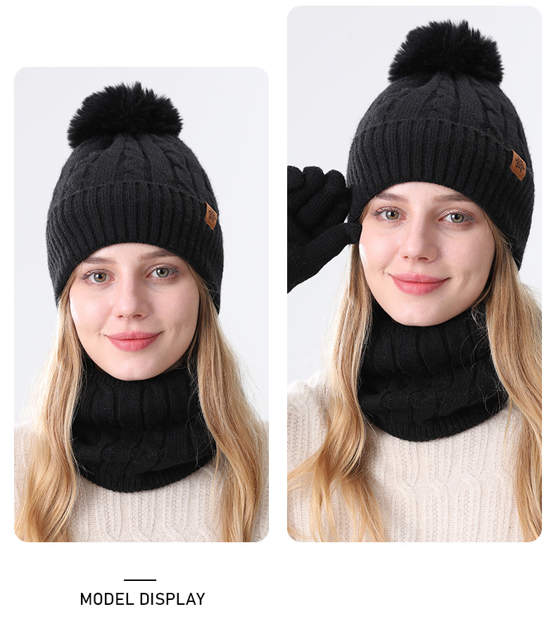 亚马逊针织帽 女冬季保暖骑行护耳毛线针织帽子围脖手套三件套