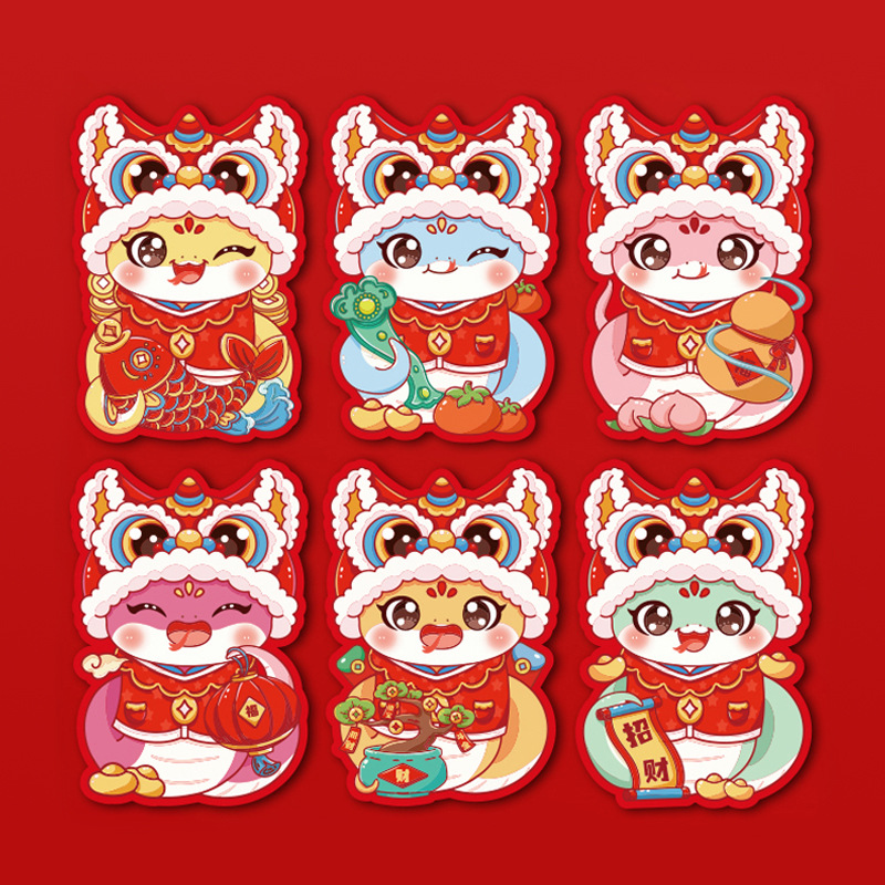 2025新款卡通可爱造型瑞祥生肖过新年蛇年个性醒狮红包利是封现货