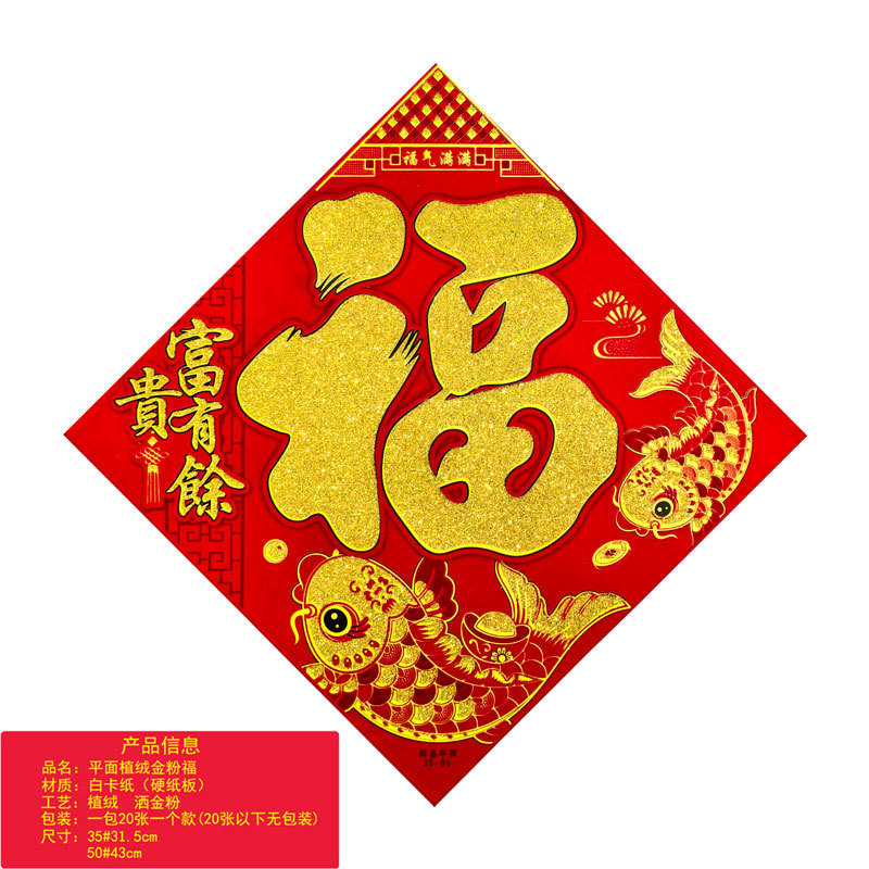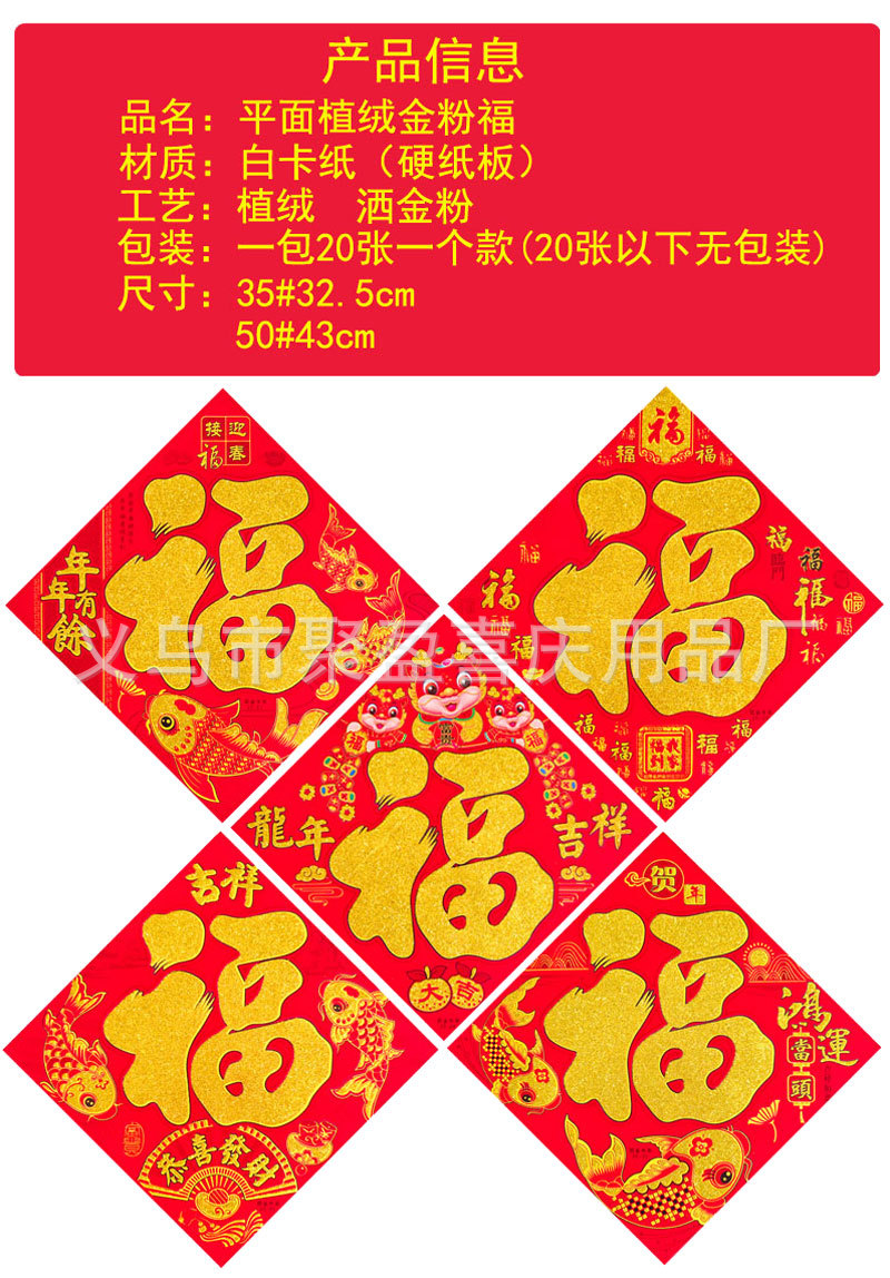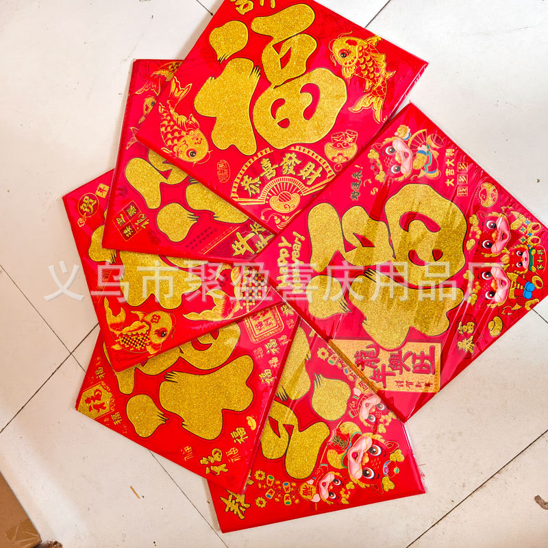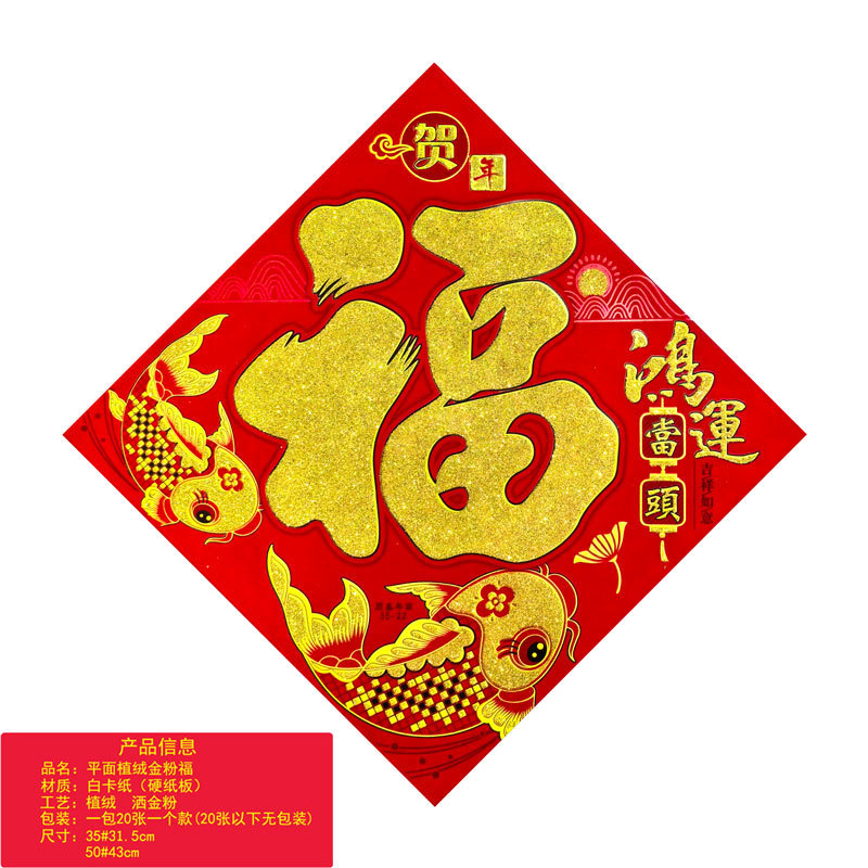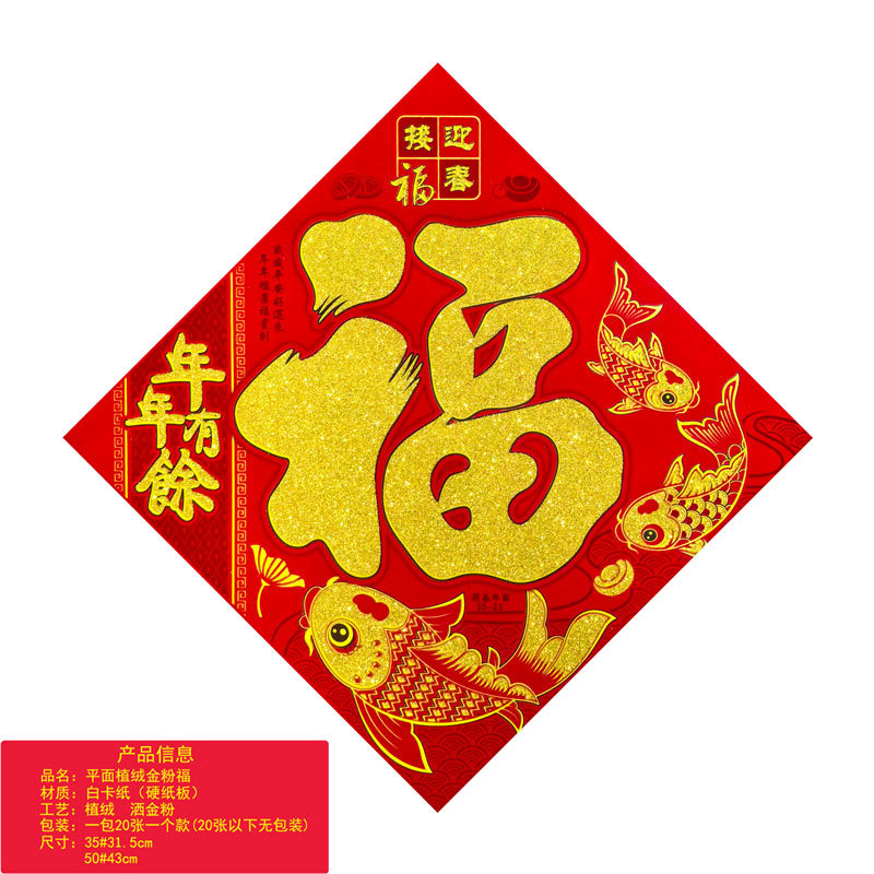2026马年新款植绒福字贴平面大门卡纸福字春节家用装饰年画批发