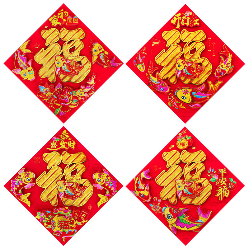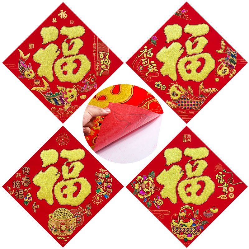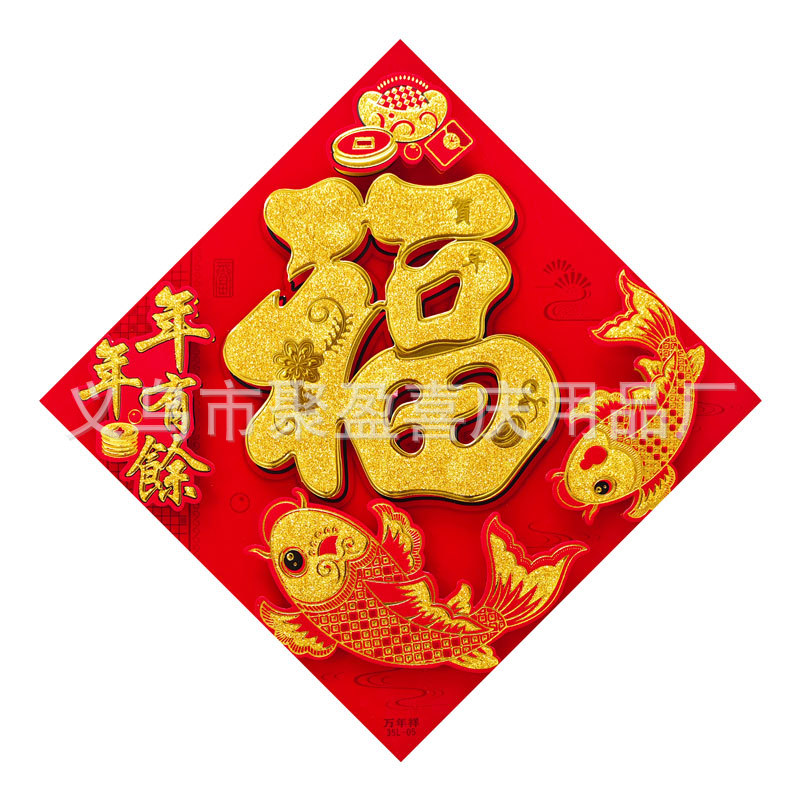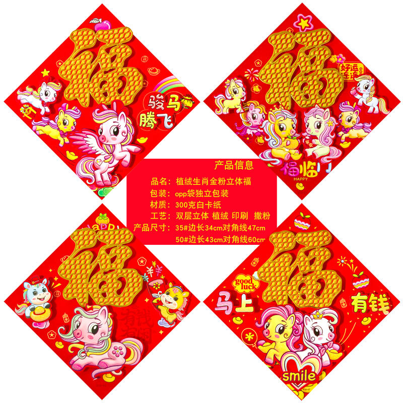 马年新款全背胶立体福字贴自粘福字高档植绒金粉福春节装饰品批发