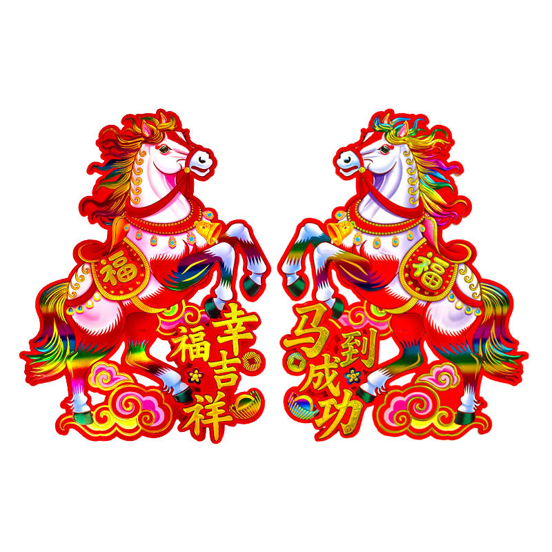 2026马年植绒立体生肖门贴新年卡通年画对贴春节装饰窗花贴批发