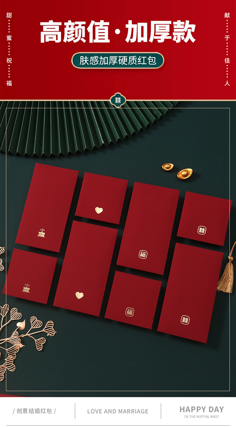新款简约肤感红包情人节个性化创意红包袋生日快乐福字结婚利是封