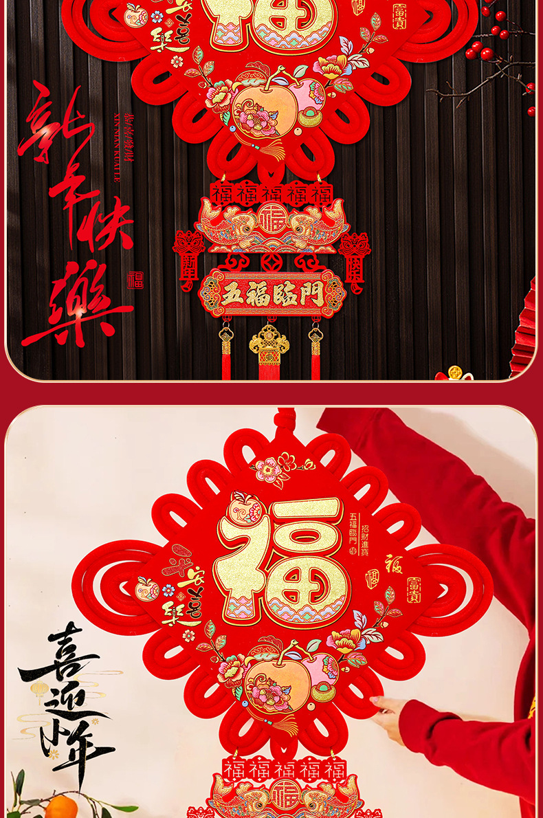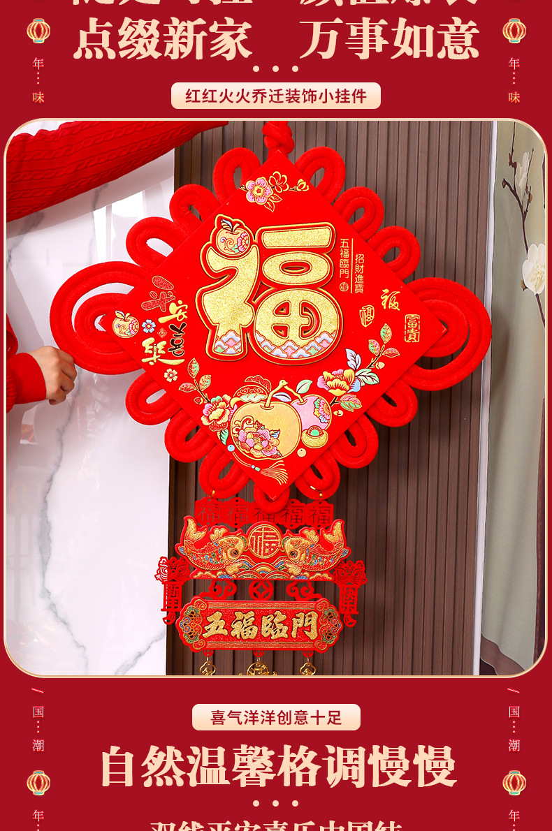 平安喜乐福字中国结挂件大号新年客厅装饰品平安结电视背景墙套装