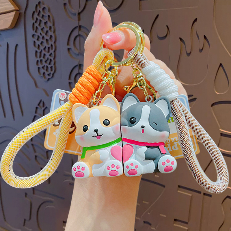 可爱狗狗一起来贴贴钥匙扣情侣柴犬公仔书包挂件汽车钥匙链小礼品