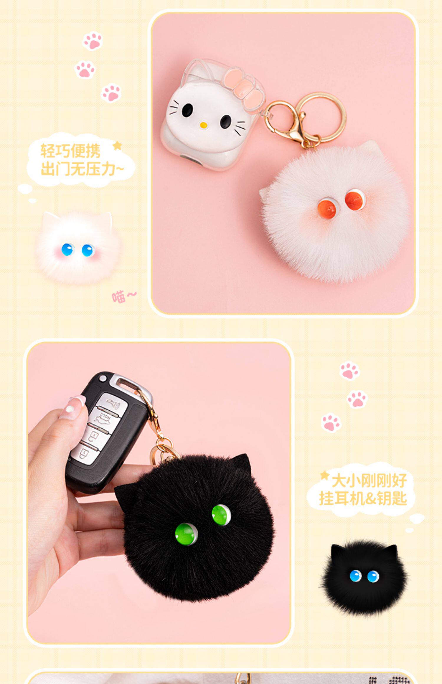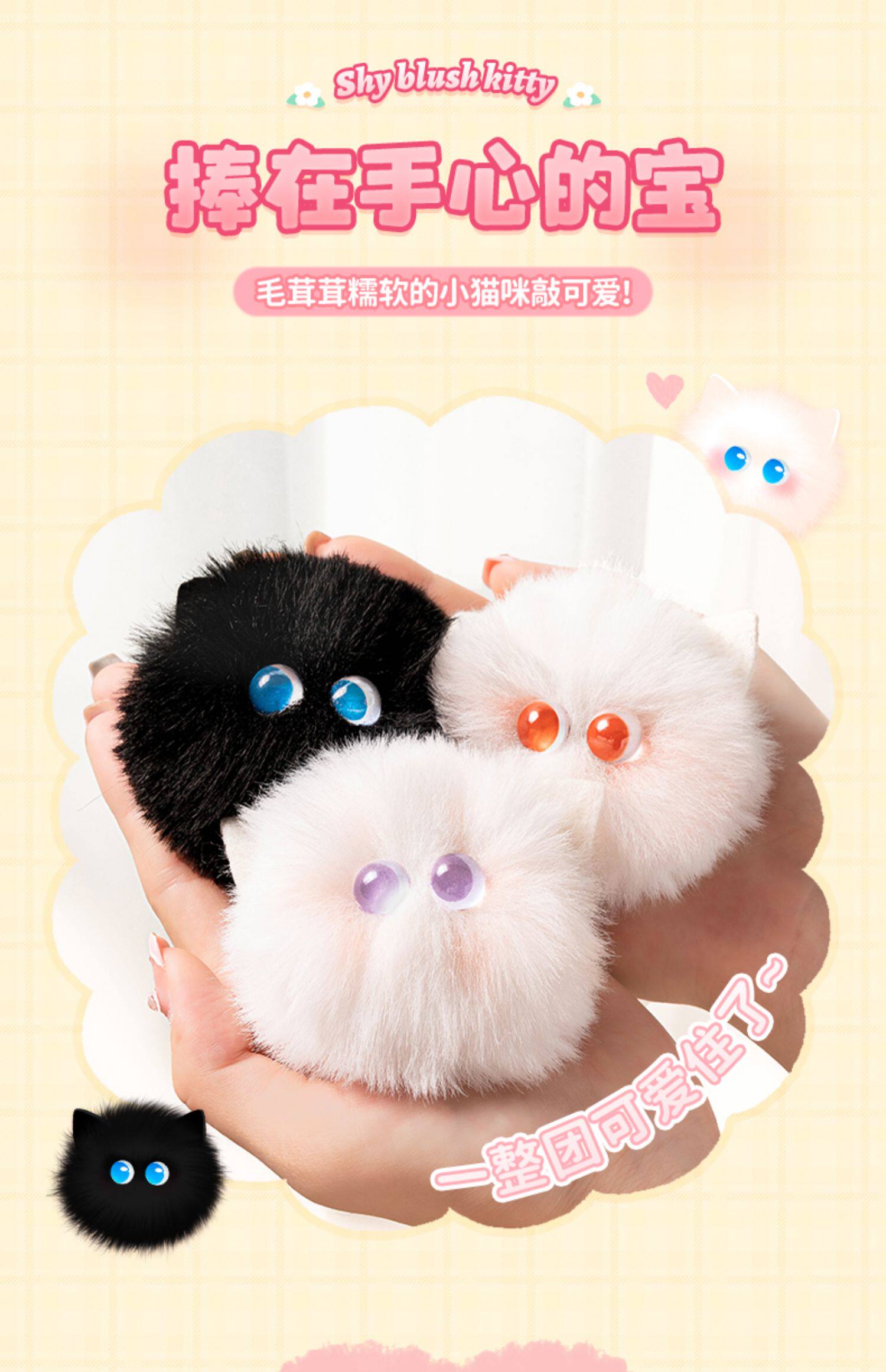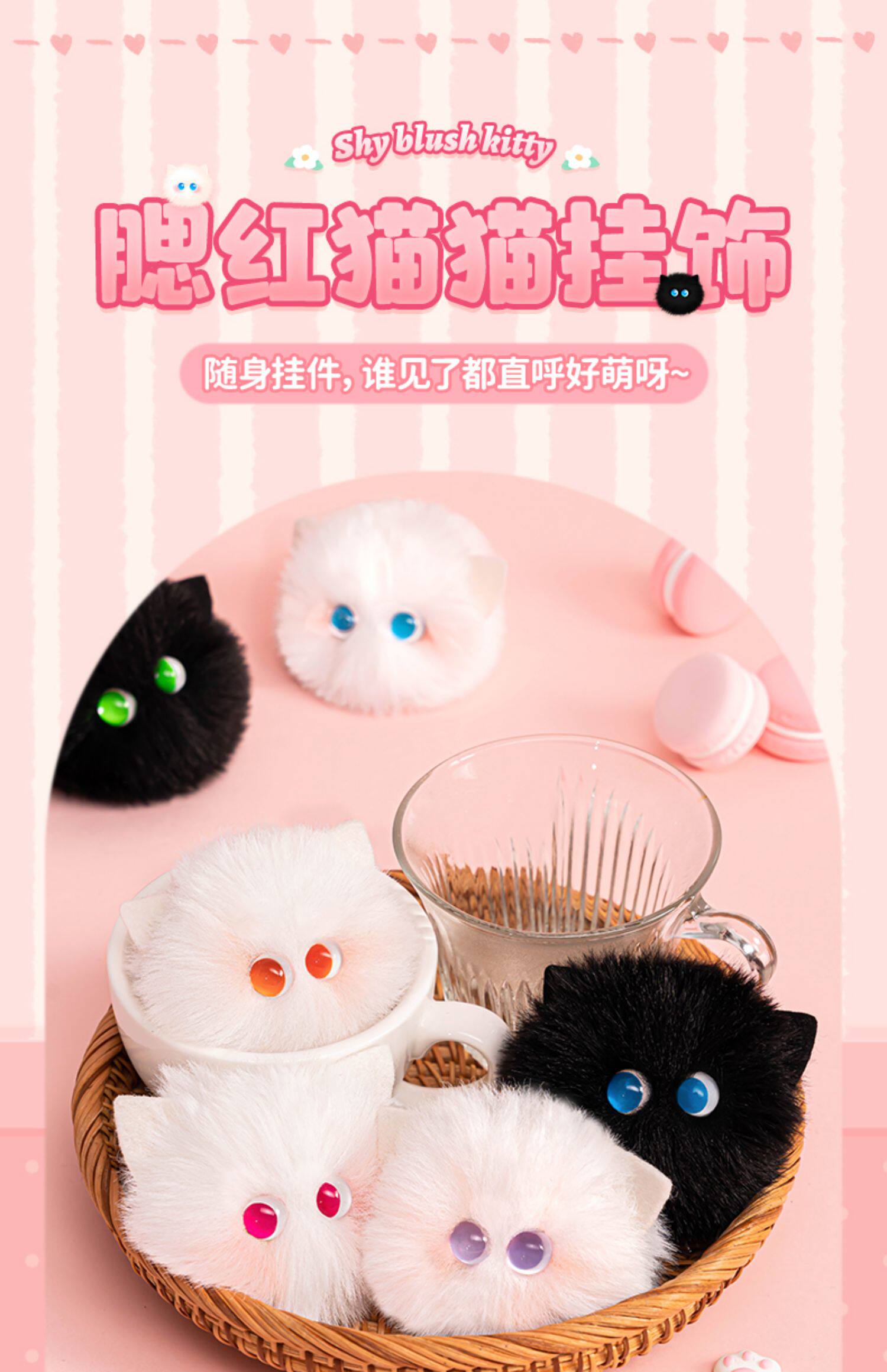 腮红猫猫球钥匙可爱毛绒玩偶书包挂件女包包精致公仔挂饰小饰