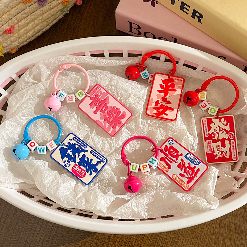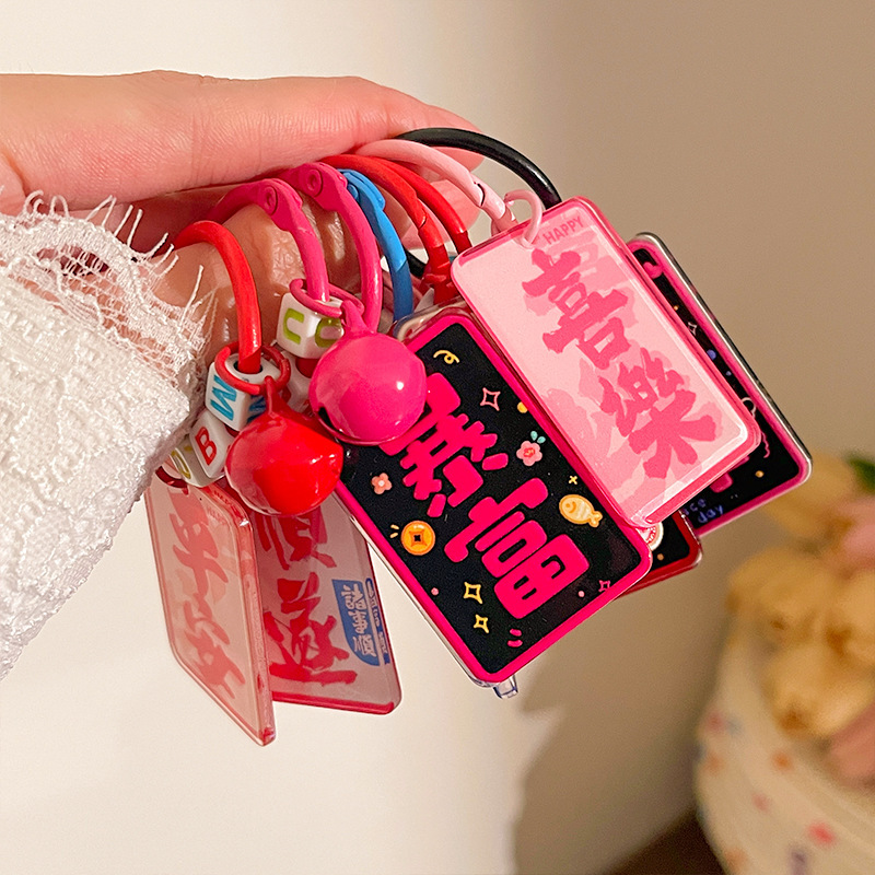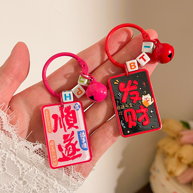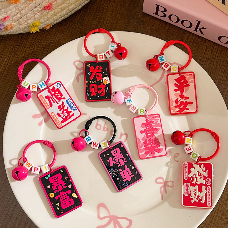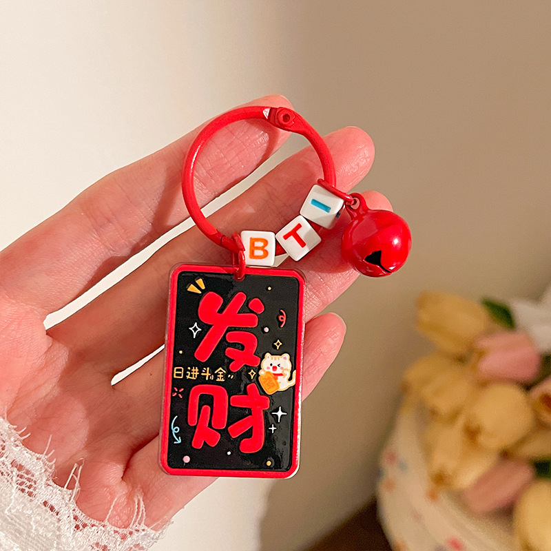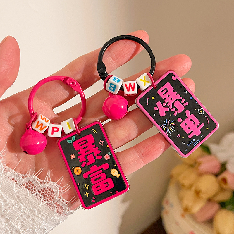 创意暴富祝福语亚克力字牌钥匙扣书包挂件diy饰品配件钥匙圈礼品