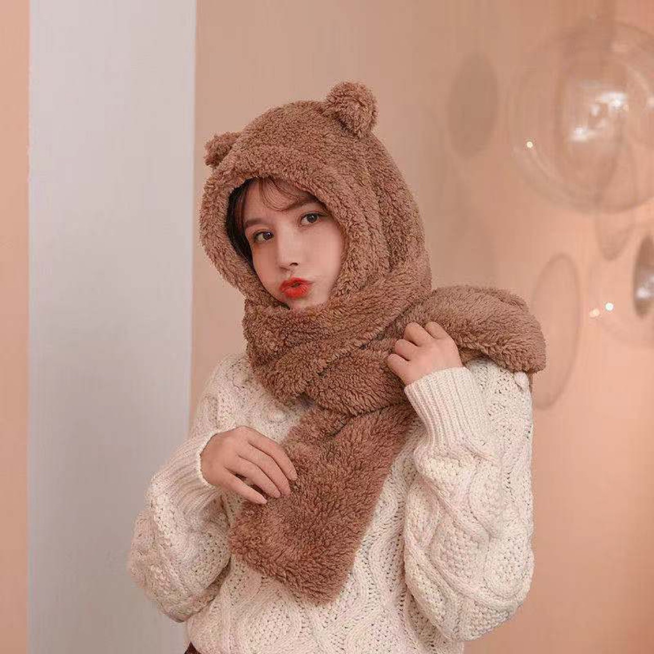 冬季保暖加厚加棉毛绒兔耳朵动物帽子手套围巾小熊三件套帽厂护耳
