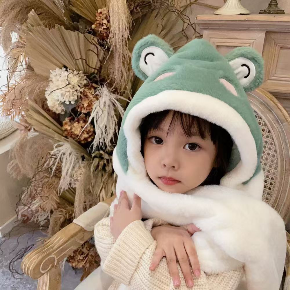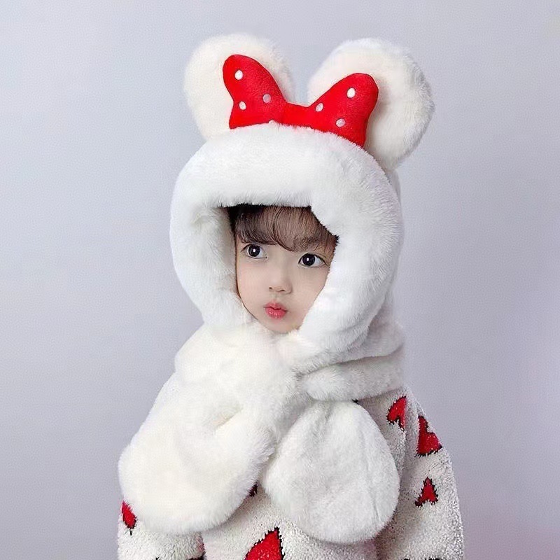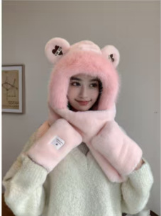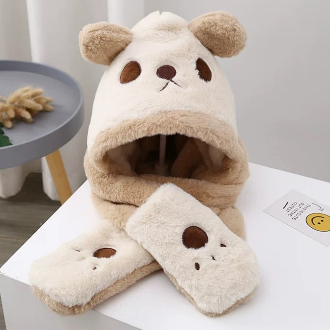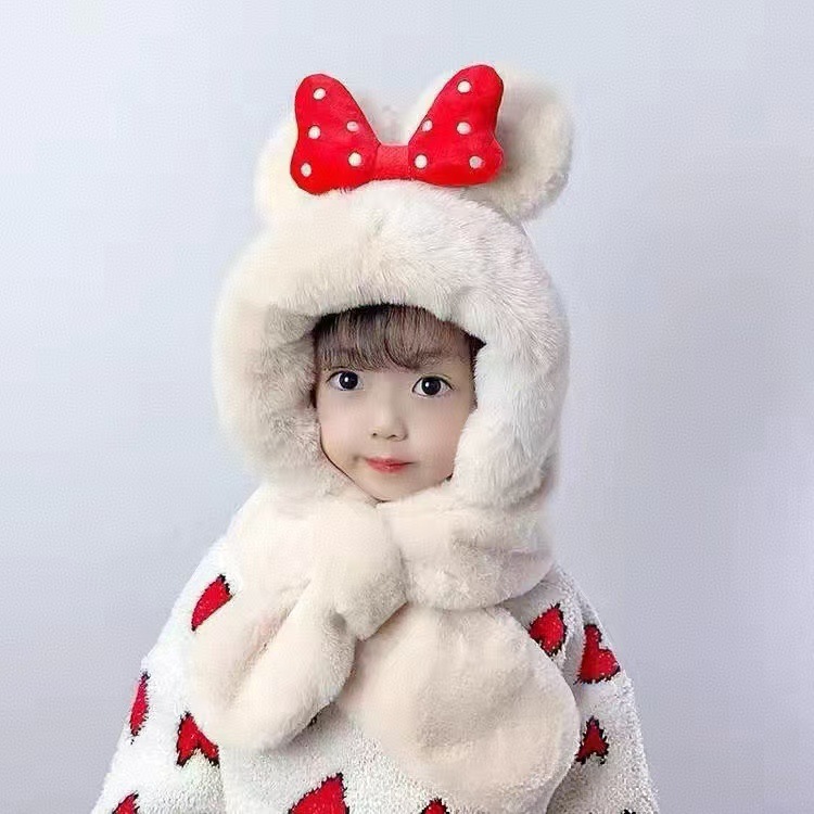 秋冬季超萌卡通儿童帽子围巾可爱男女宝宝三件套帽子手套一体围巾