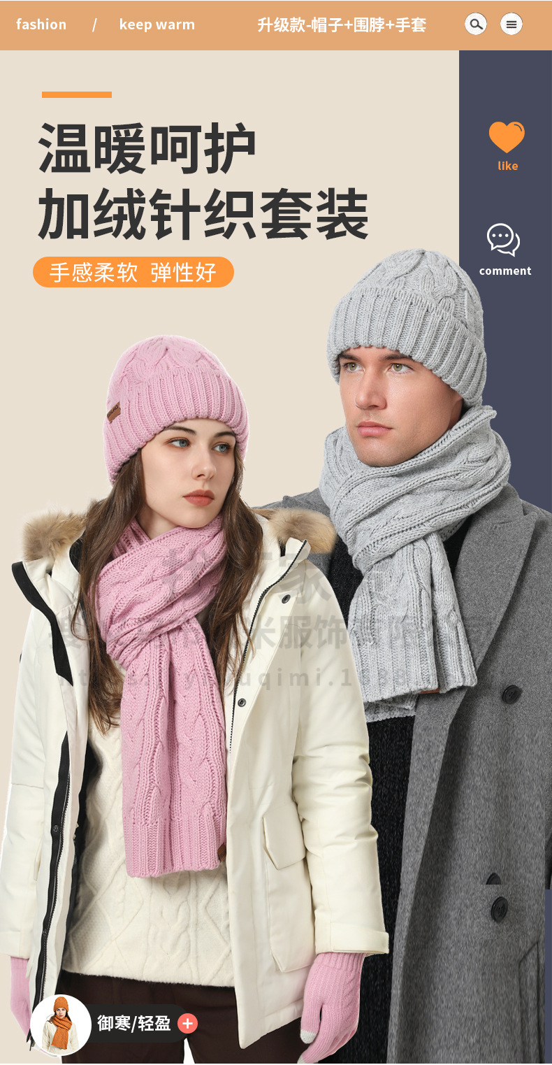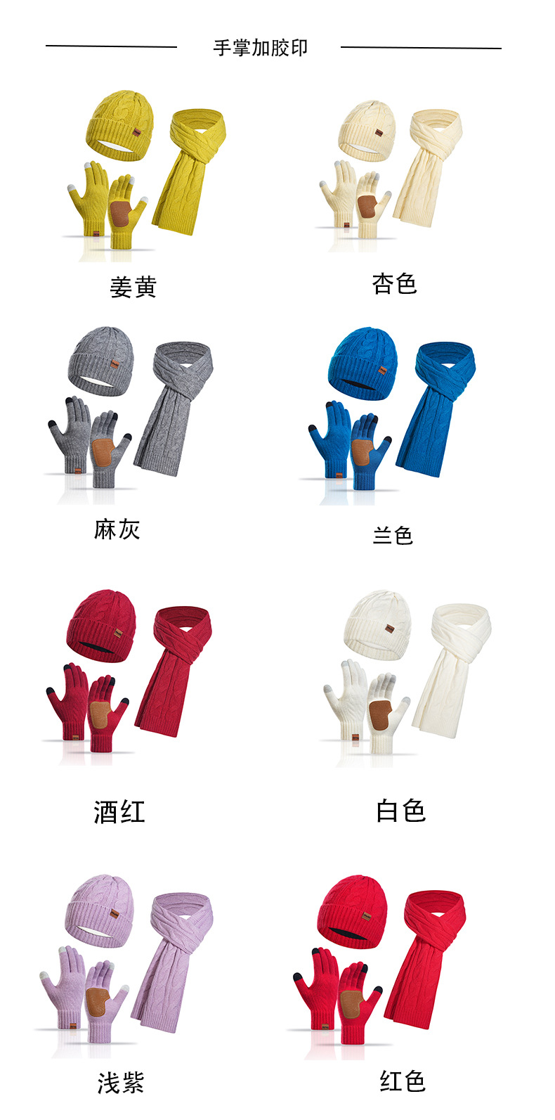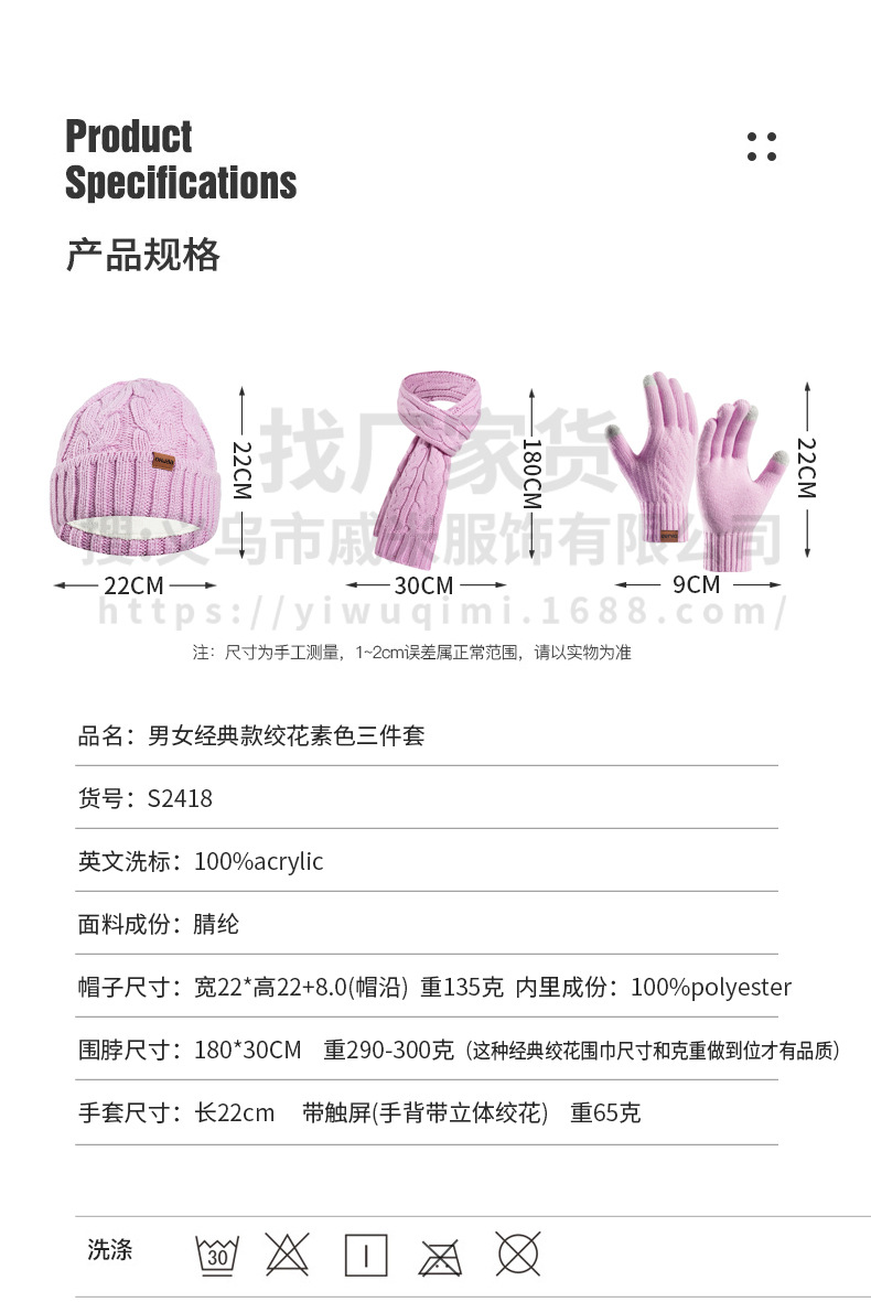 跨境帽子男女秋冬季粗毛线麻花加绒针织冬天帽子手套围巾保暖套装