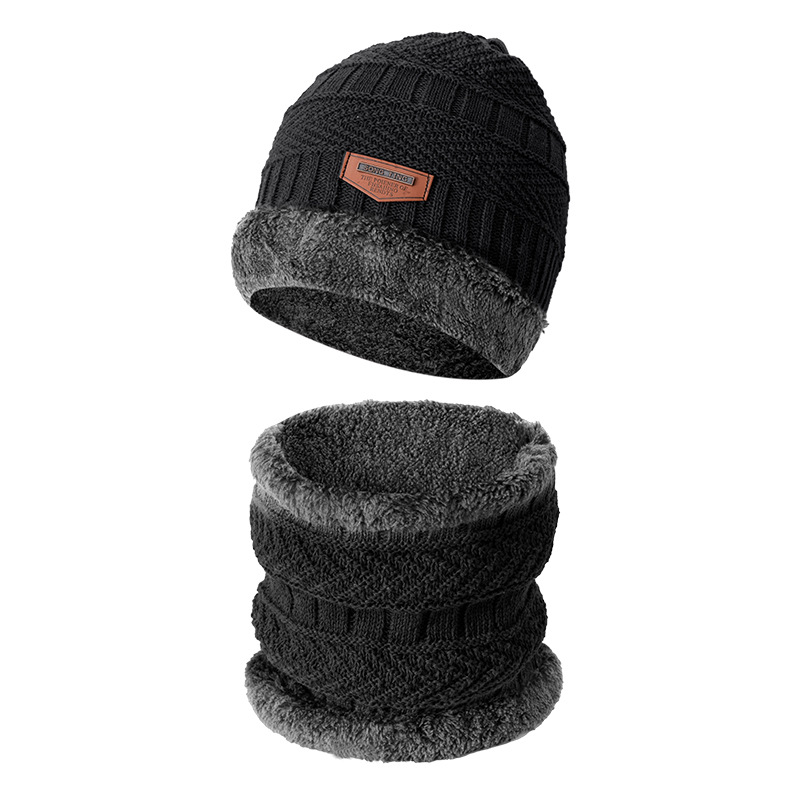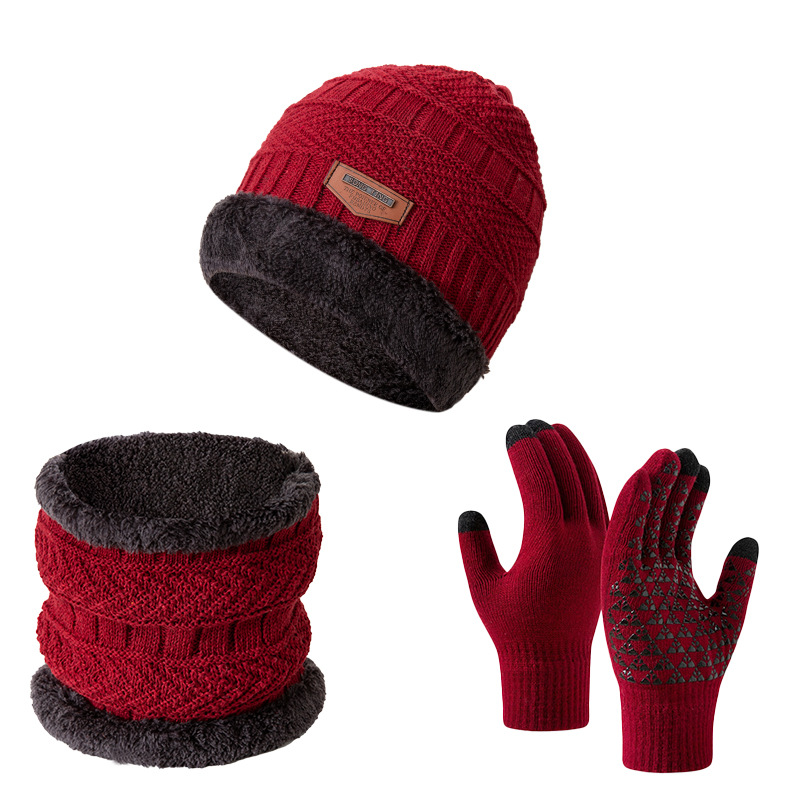 跨境冬季保暖三件套帽子围脖手套围巾加绒防寒骑车触屏针织帽子
