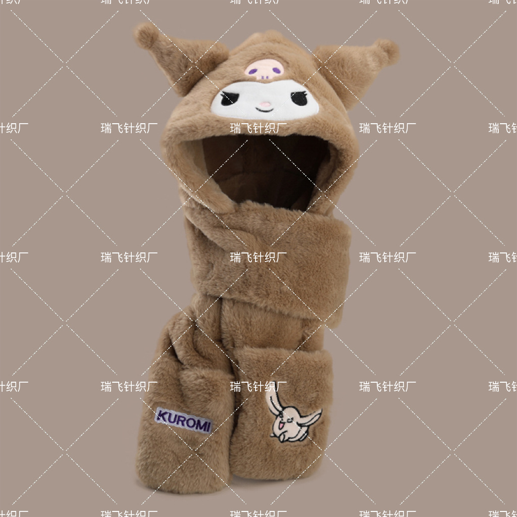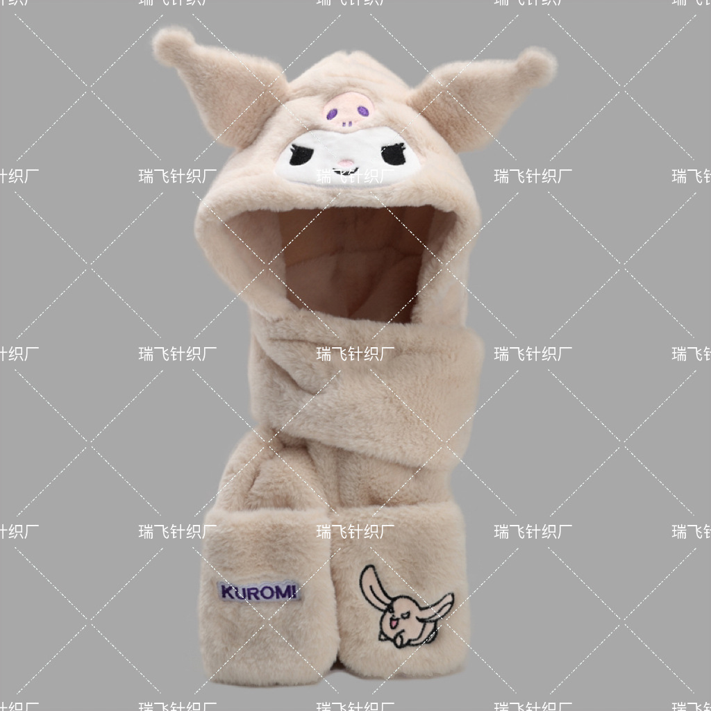 儿童帽子围巾一体冬季保暖男童女童毛绒K洛米护耳帽手套2024新款