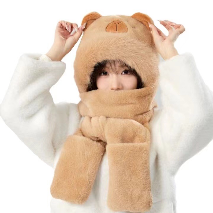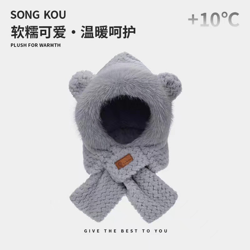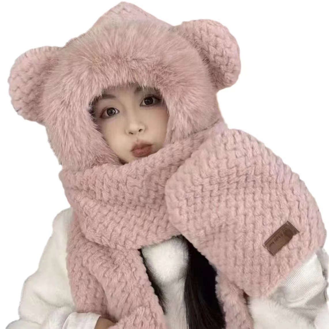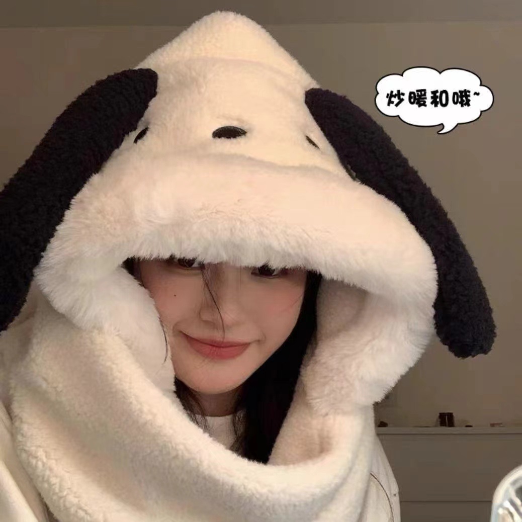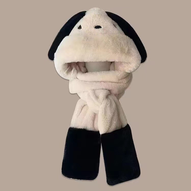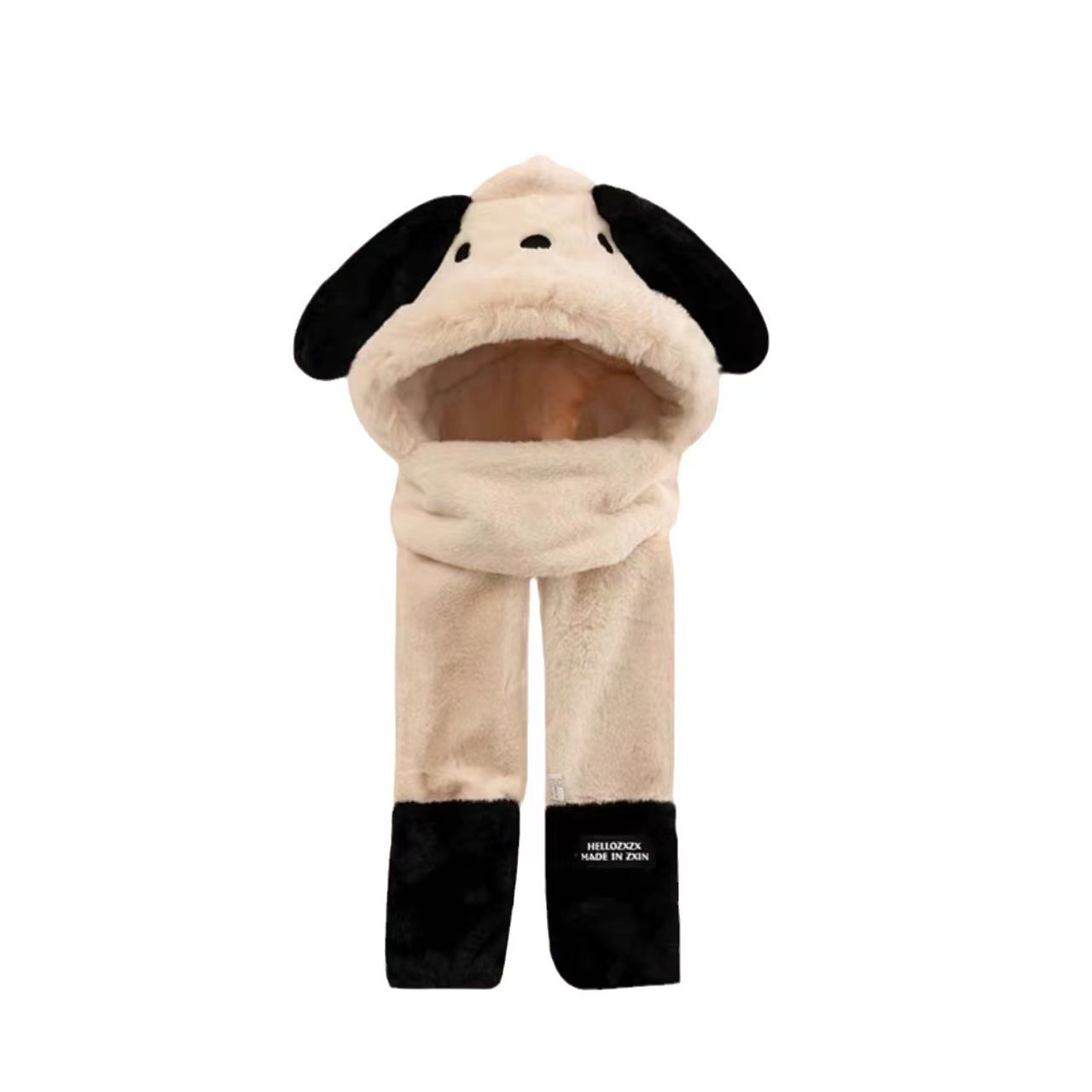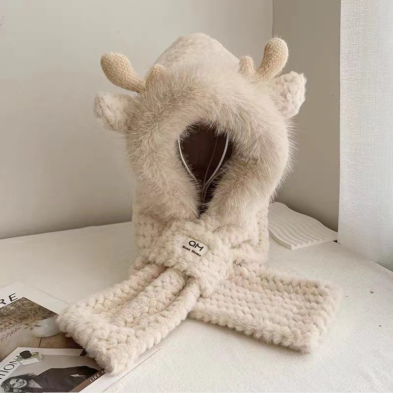 龙宝女鹿角三件套帽子冬手套围巾一体可爱保暖加厚帕恰狗毛绒成人