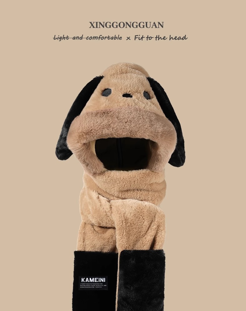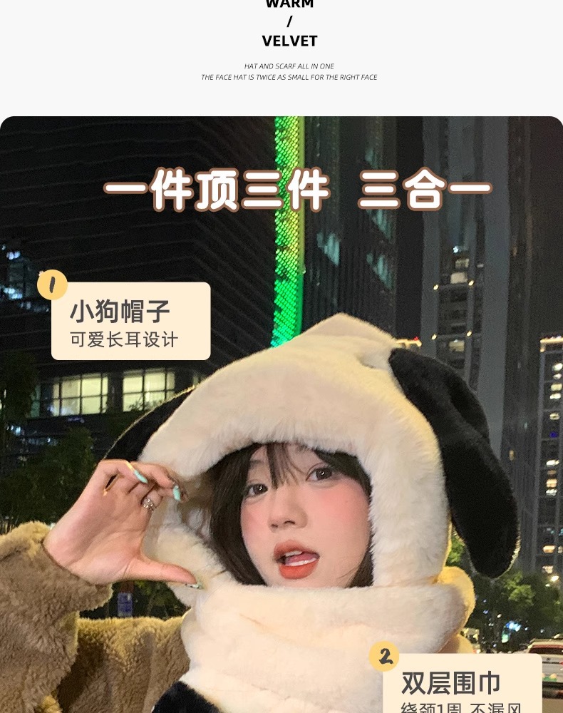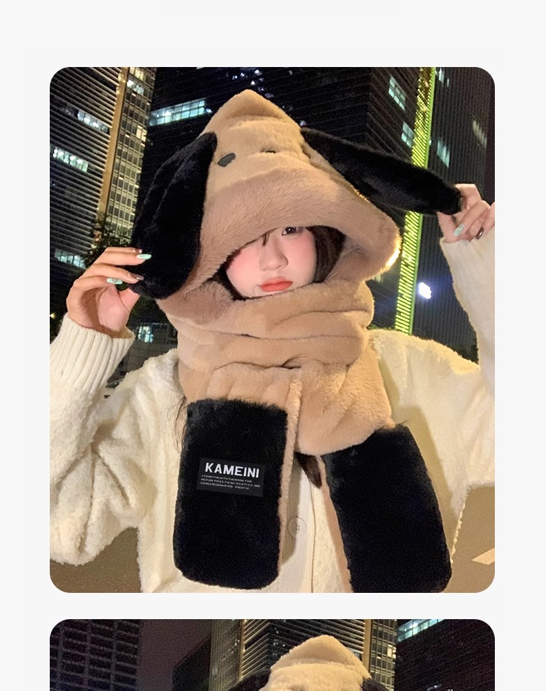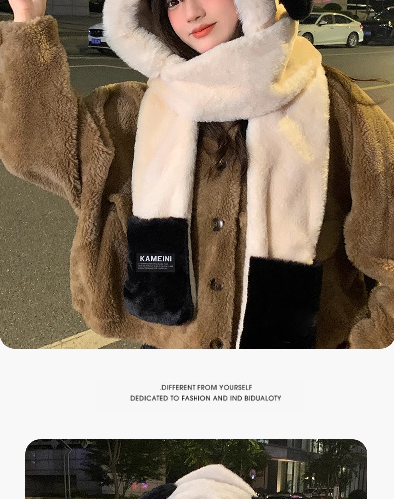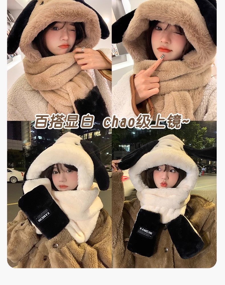 可爱小熊卡通毛绒连帽围脖女冬季冬天保暖手套帽子围巾一体三件套