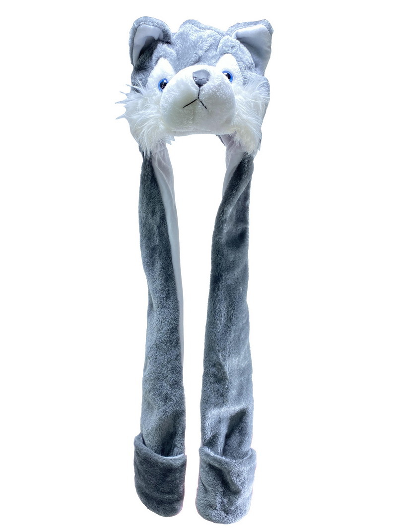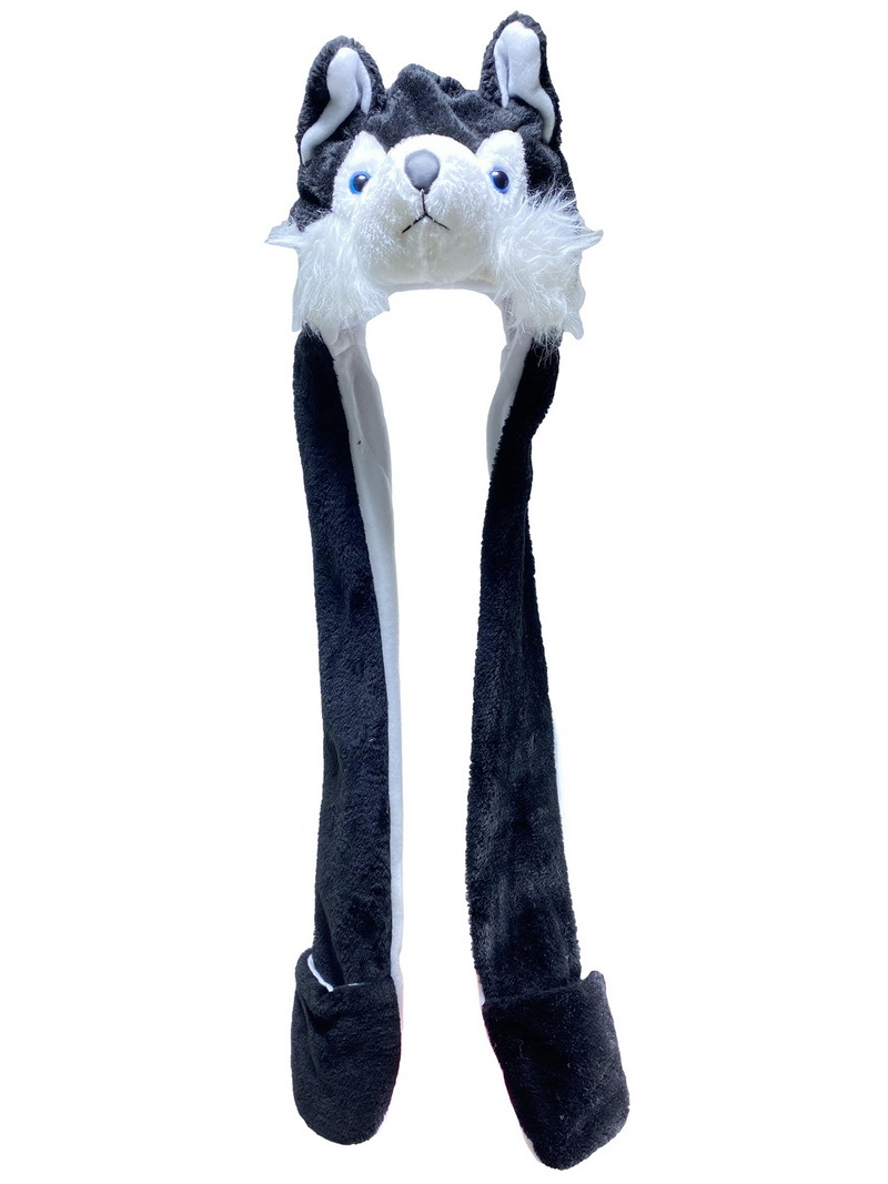 冬季帽子手套围巾一体三件套灰色哈士奇帽子户外加厚保暖亲子帽