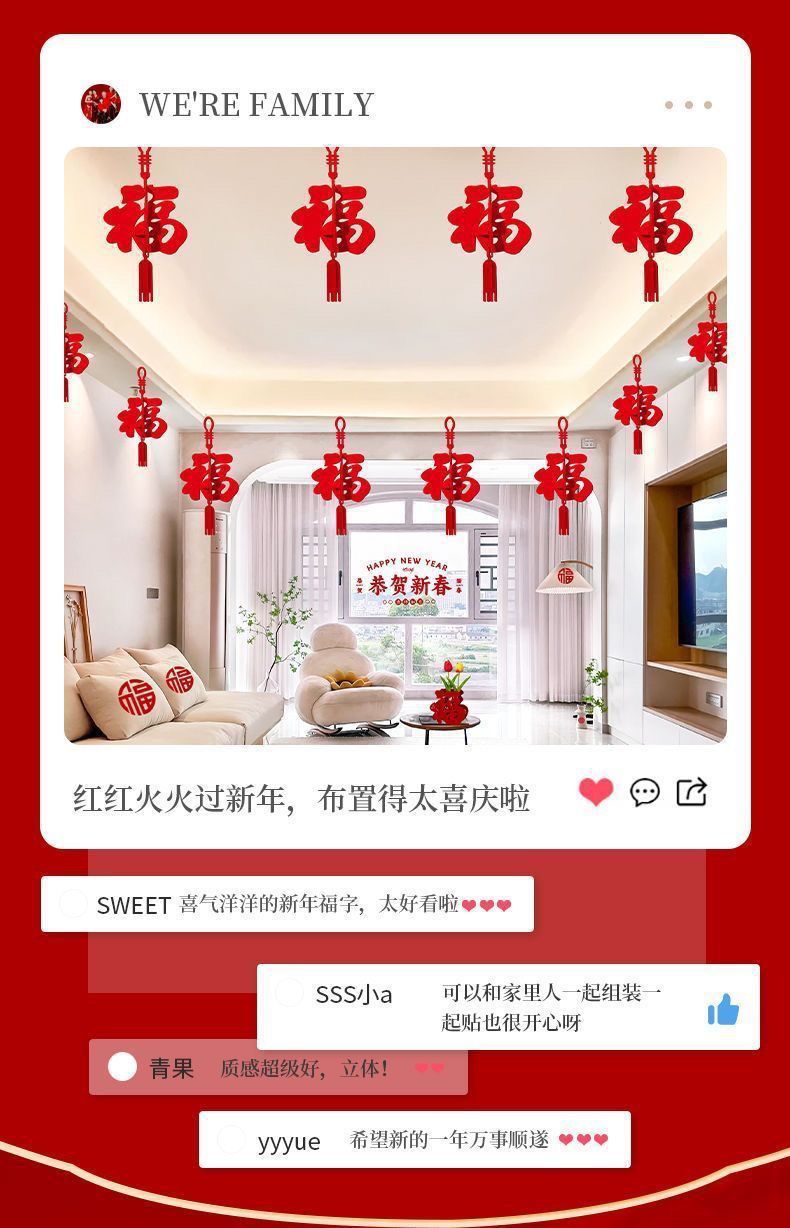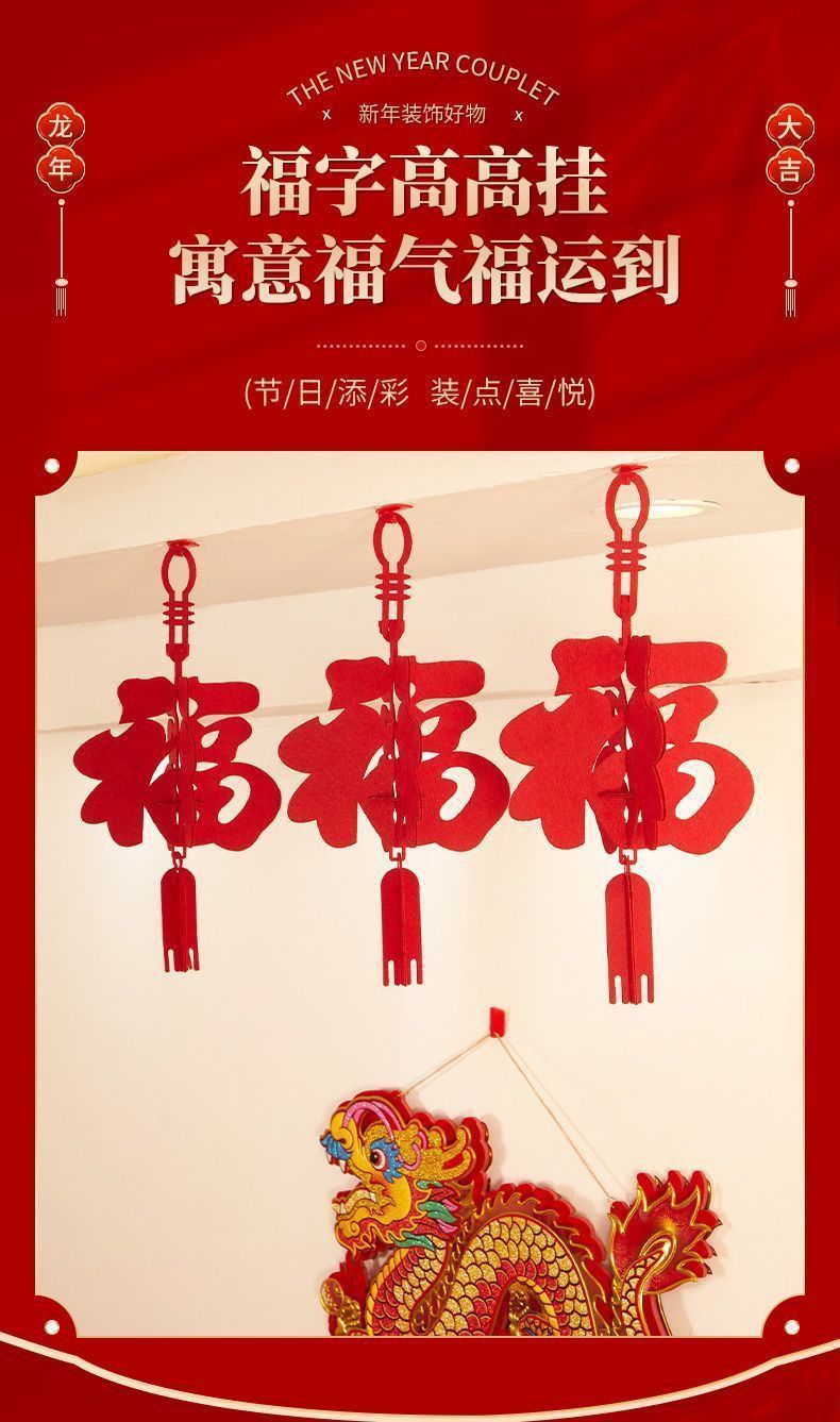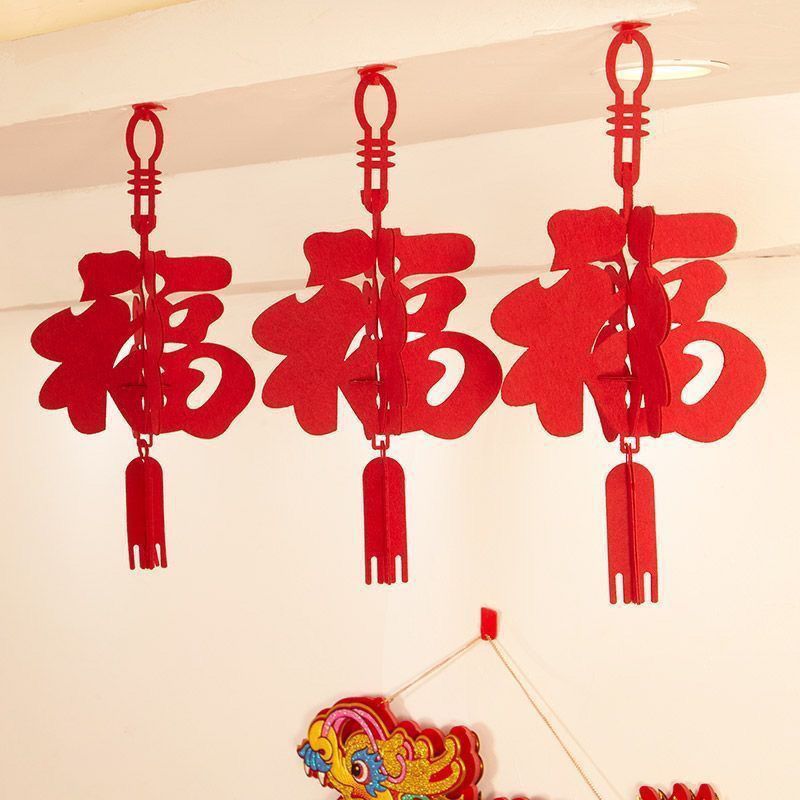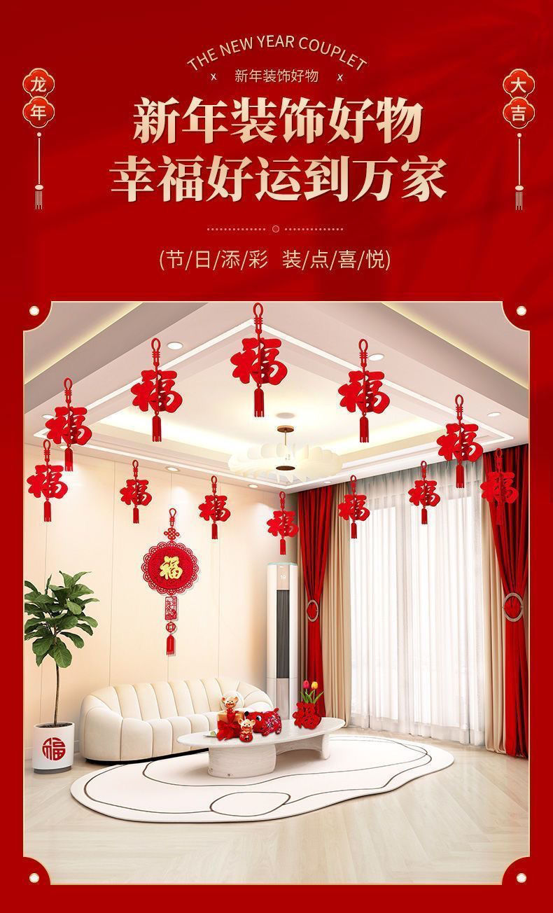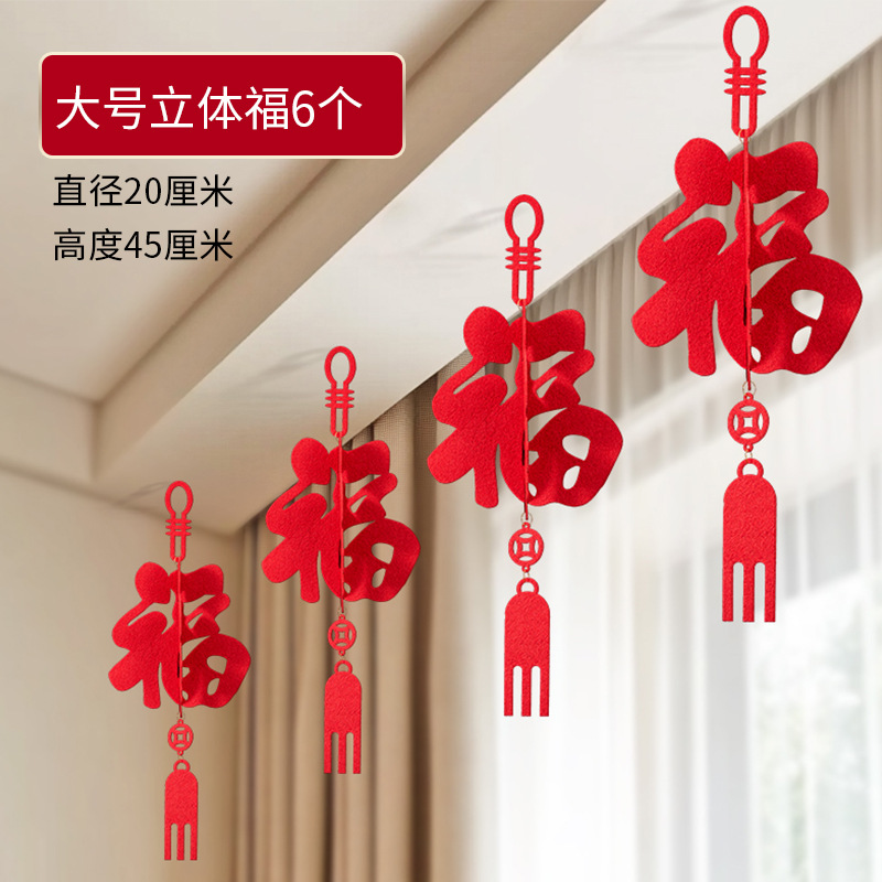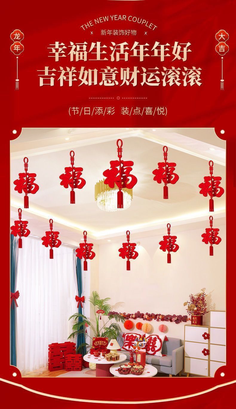 春节装饰商场店铺挂饰室内客厅布置新年福字房间拉花灯笼立体福字
