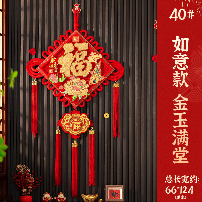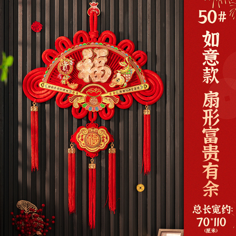 中国结福字挂件客厅玄关大号绒布板结挂饰电视背景墙氛围春节装饰