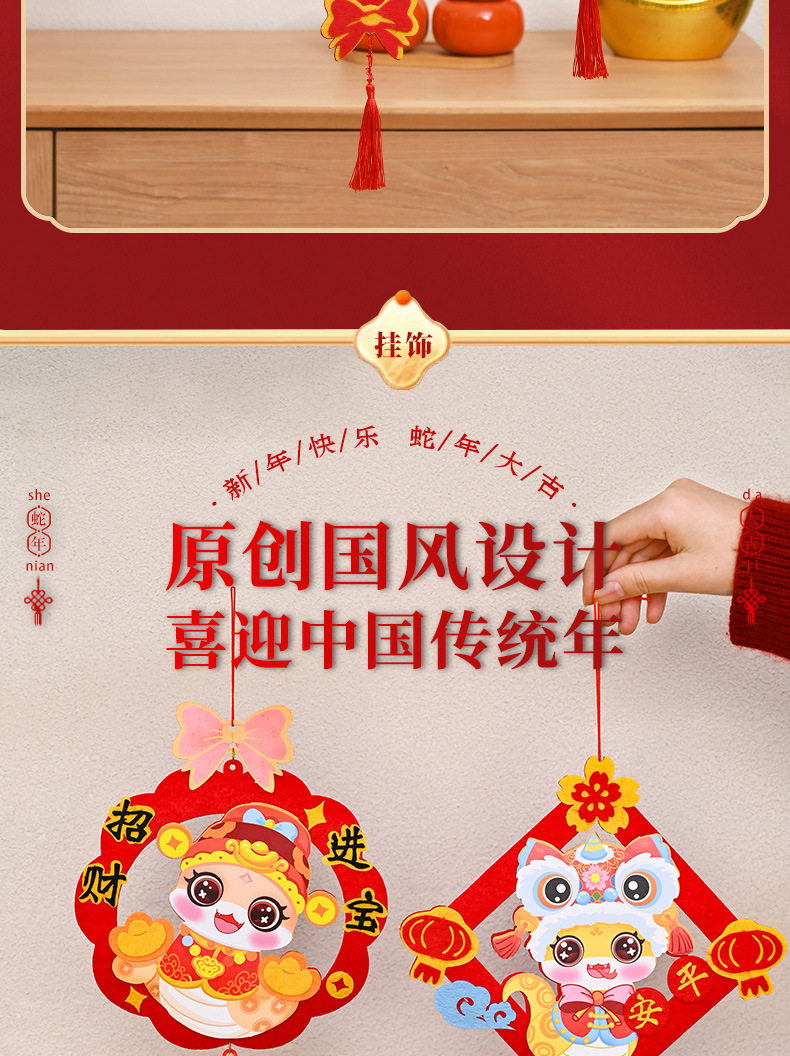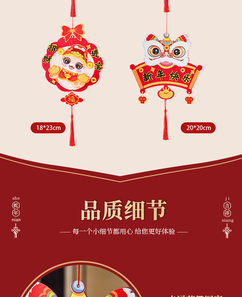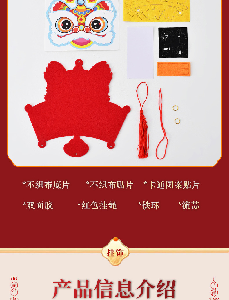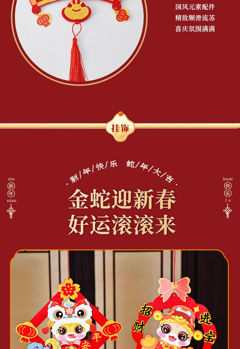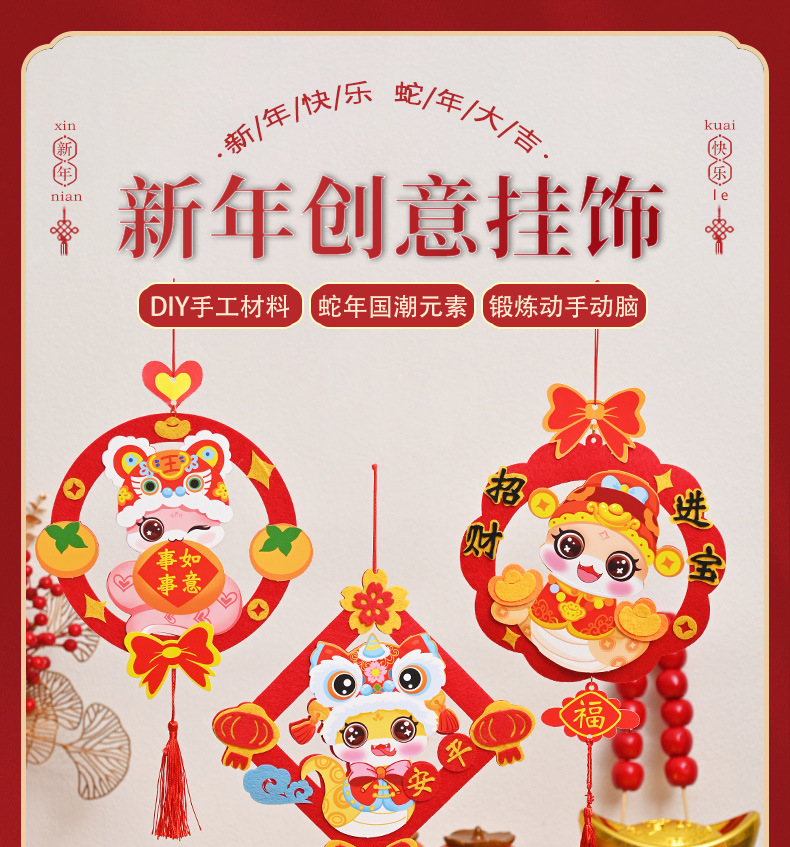 蛇年开学季挂件新年春节手工diy儿童幼儿园不织布福字材料包流苏