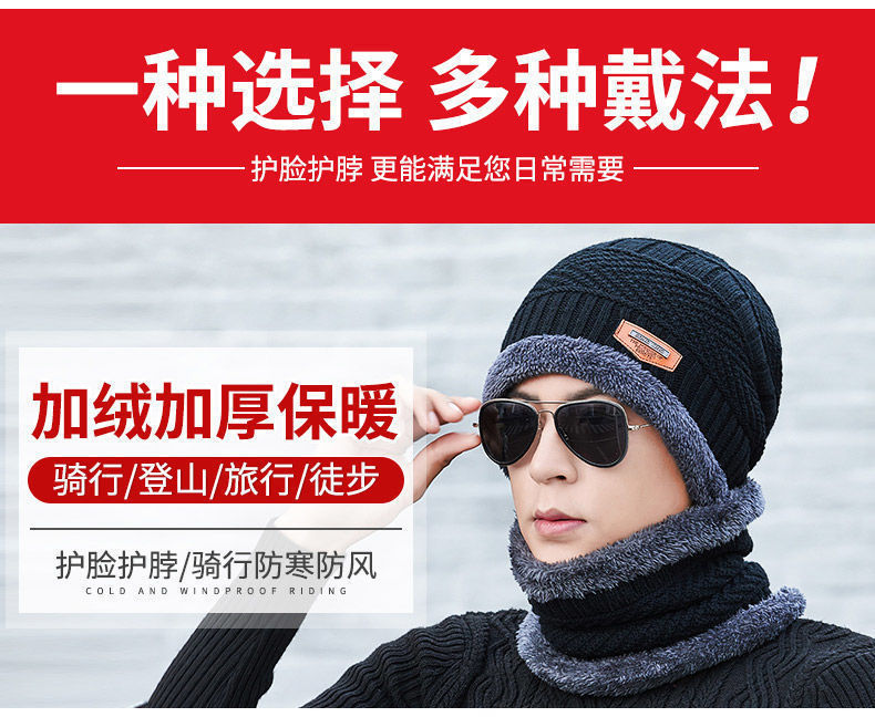 新款套装帽子男士冬季围巾手套三件套围脖一体加绒保暖冬天针织帽