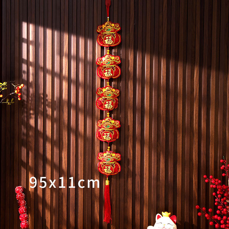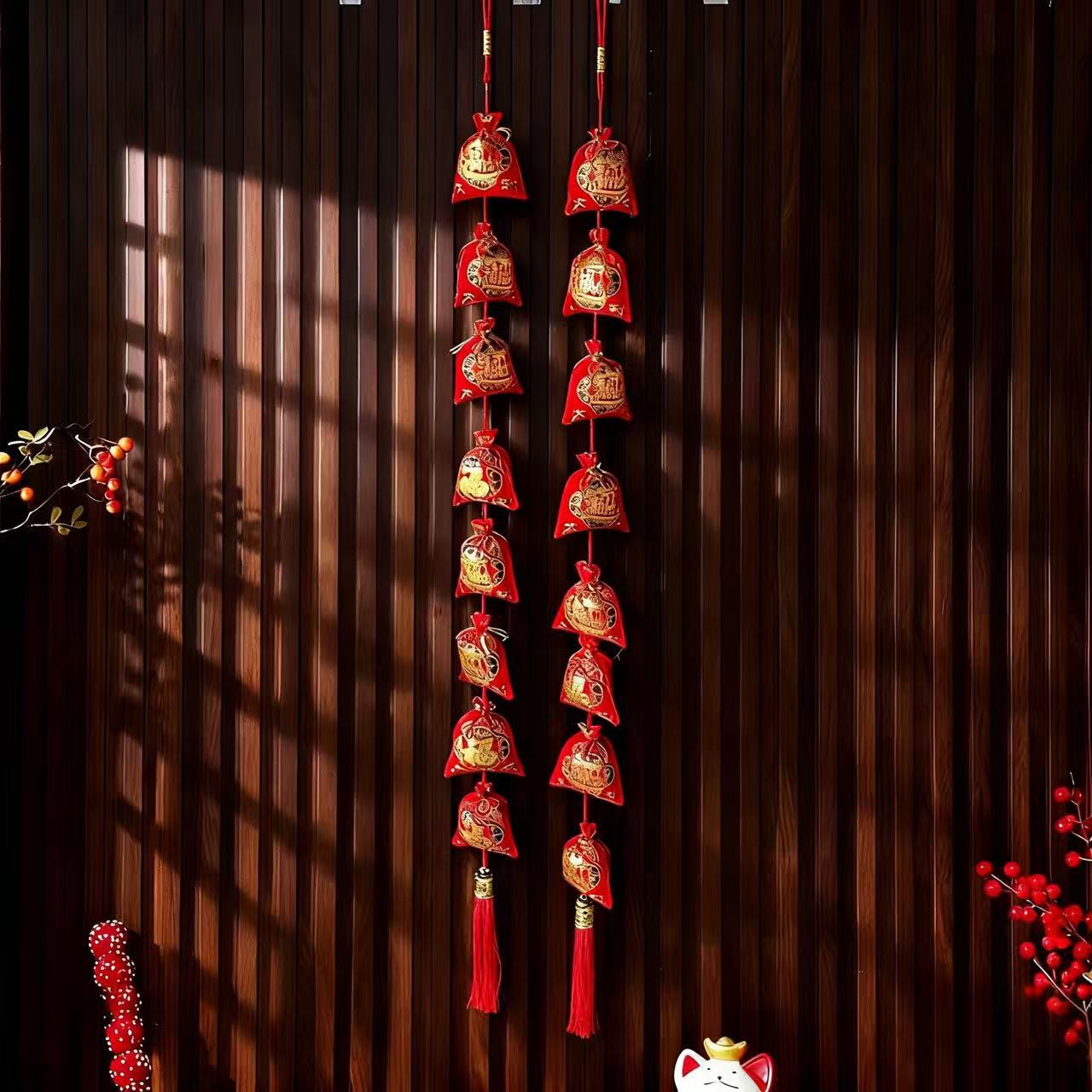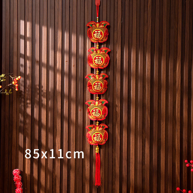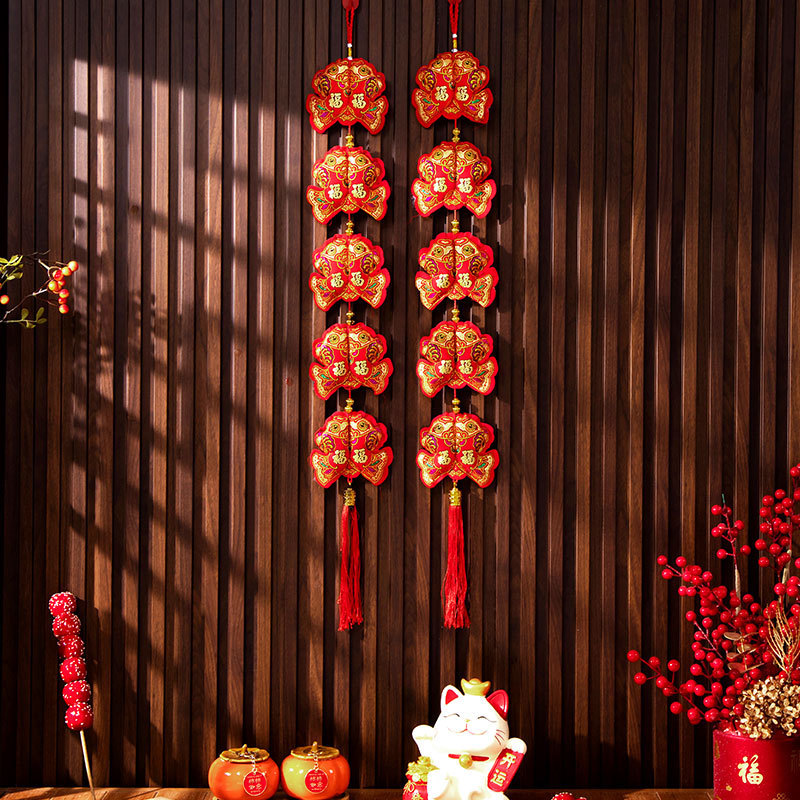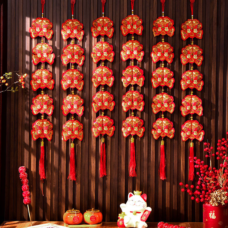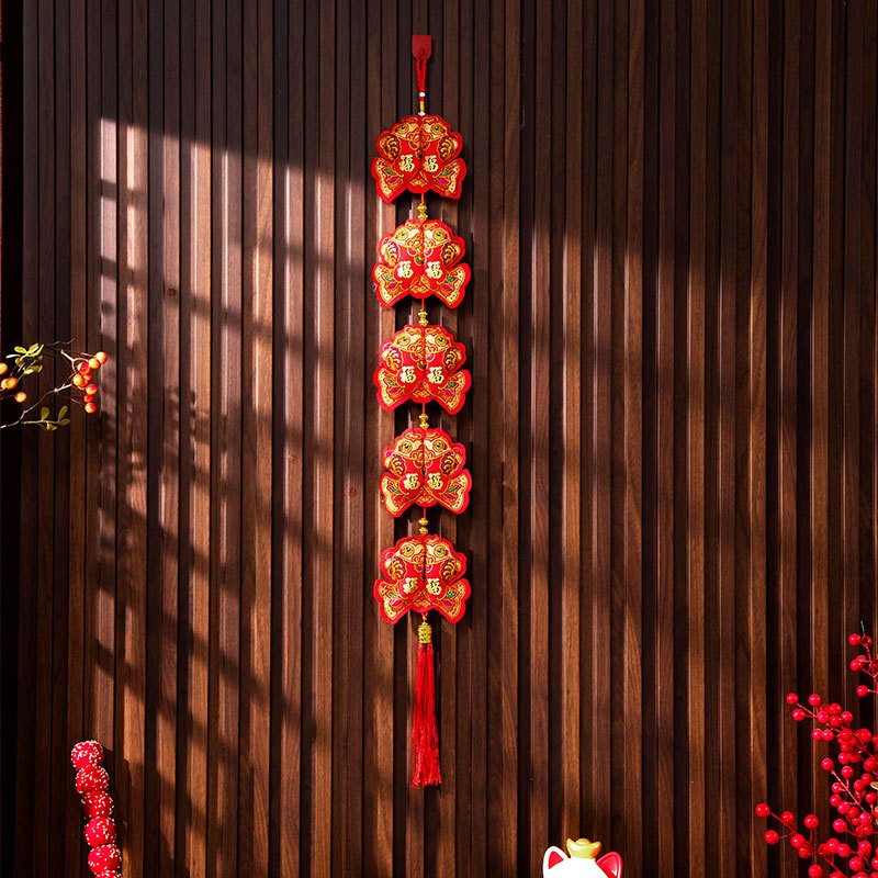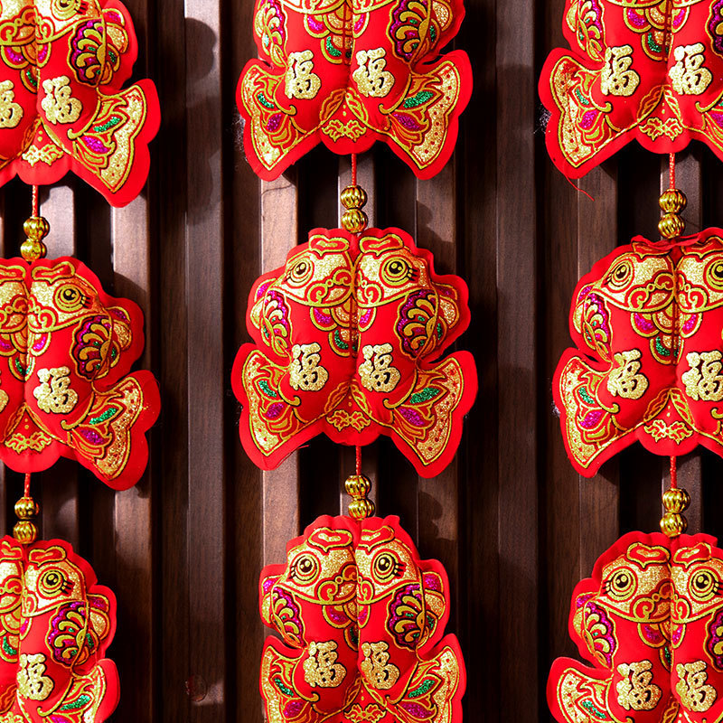 新年挂件鱼串福袋年货装饰春节用品福字挂饰双鱼福五连串挂件批发