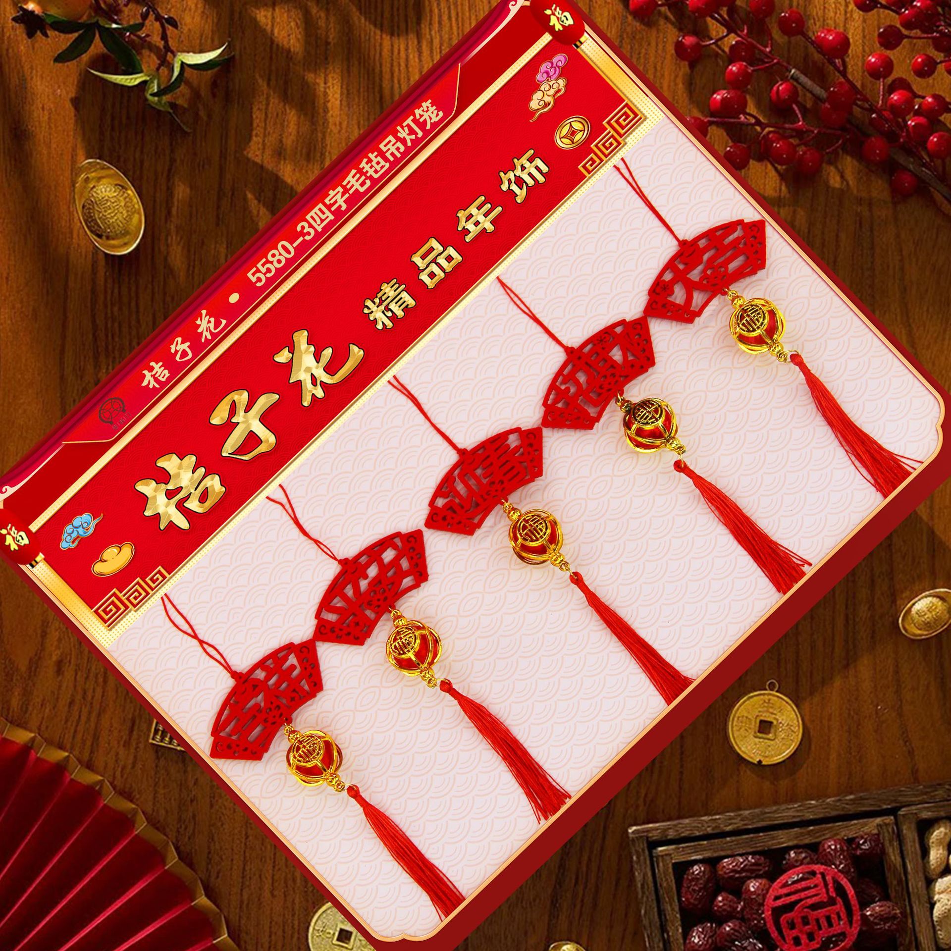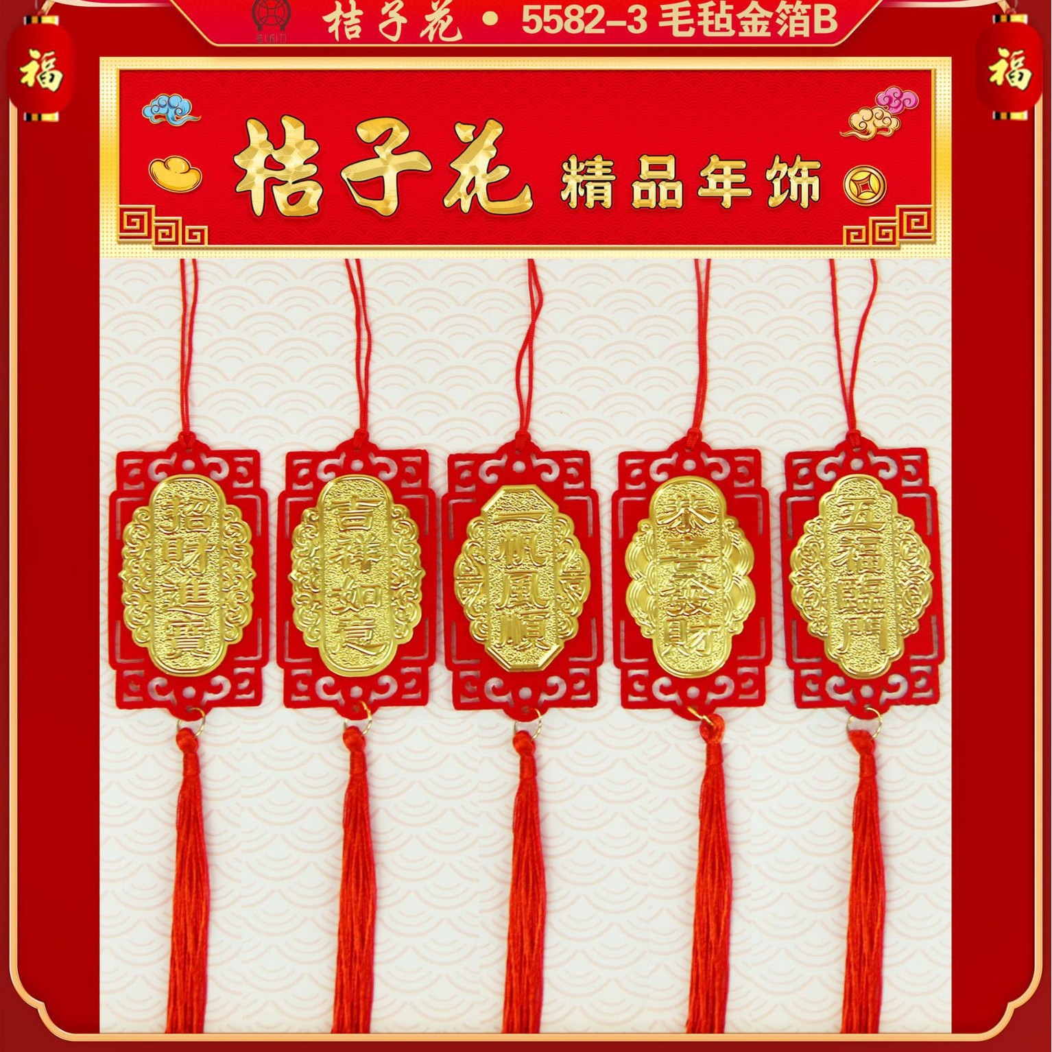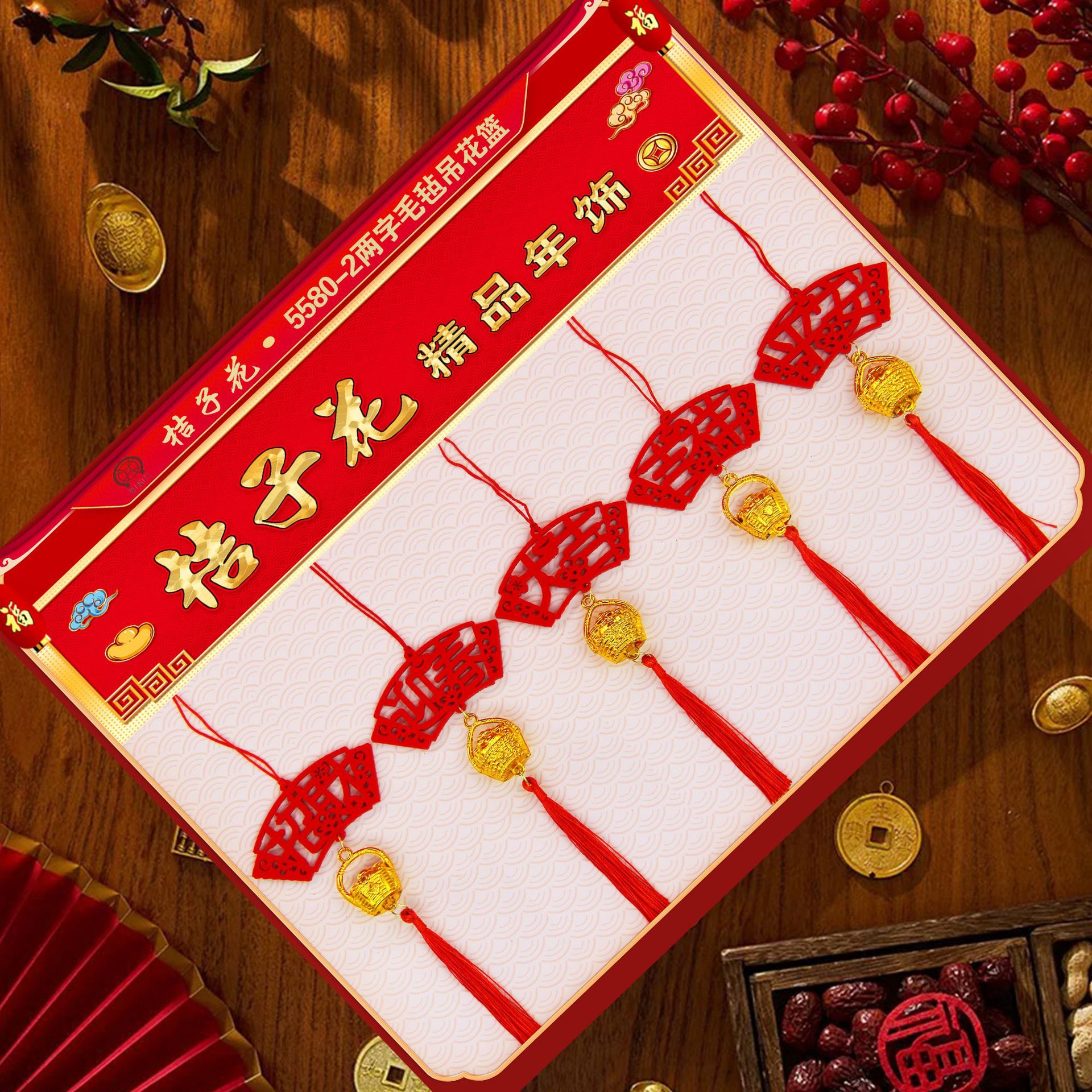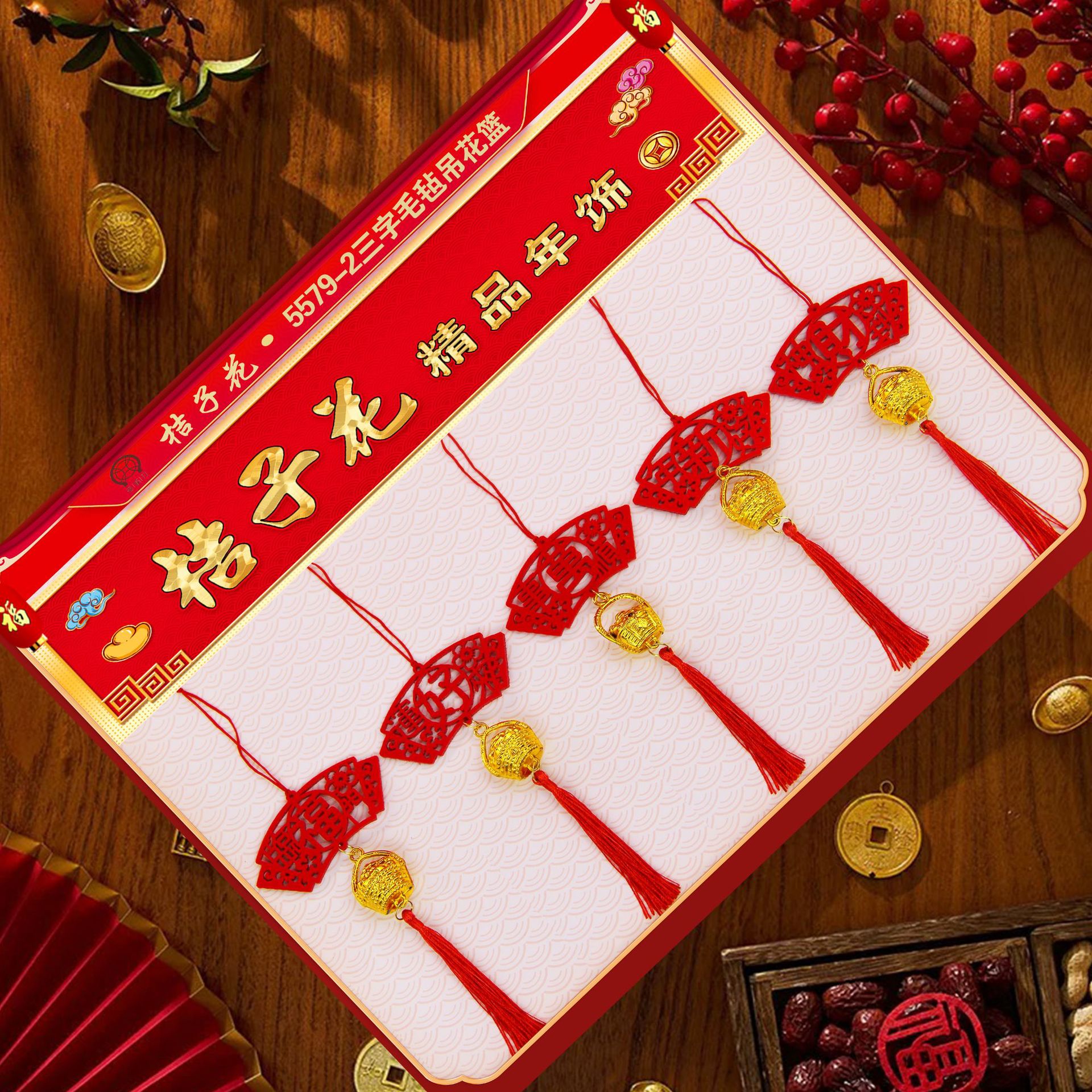 2025新年装饰挂件盆栽春节小挂饰过年吊灯笼盆景挂件桔子花小银柳
