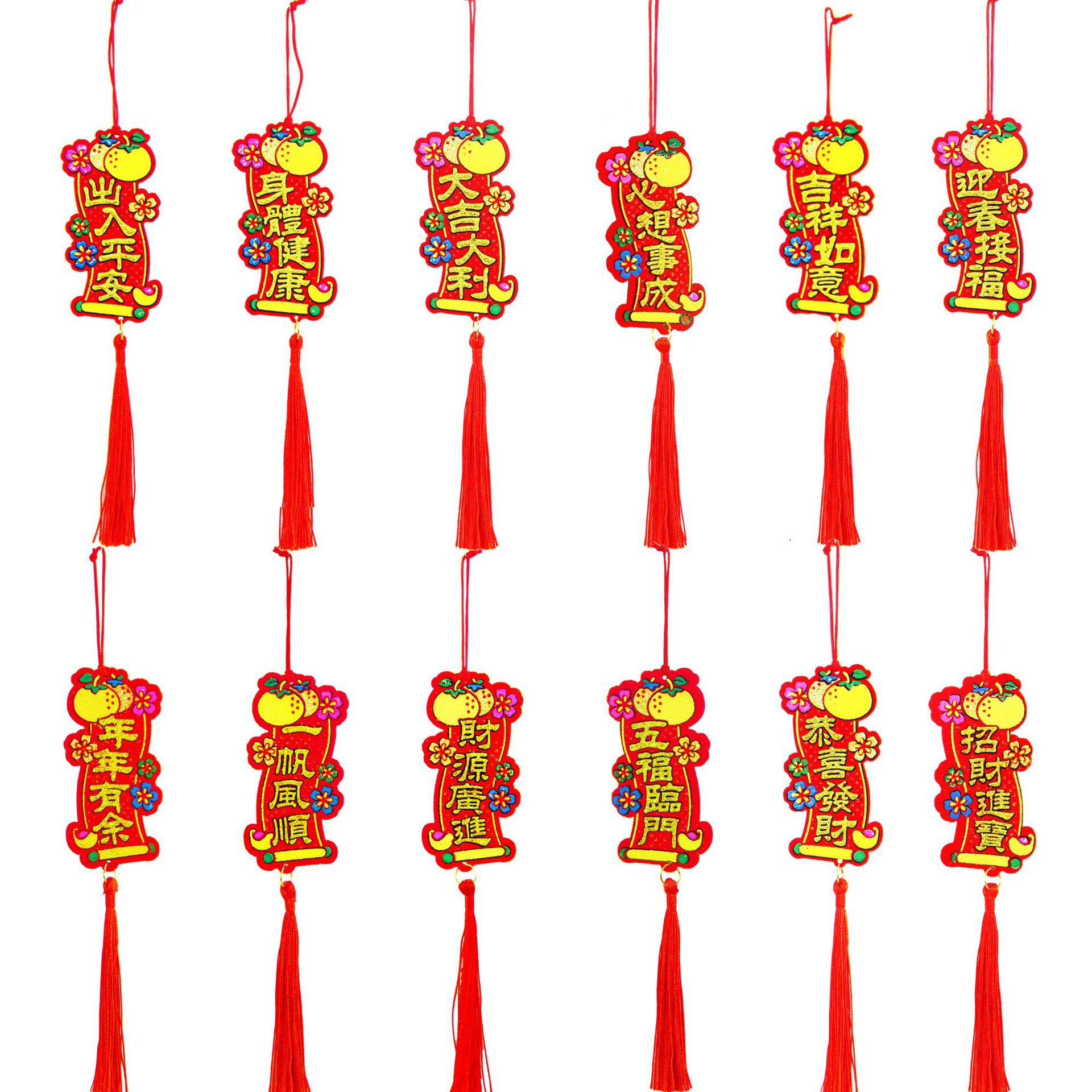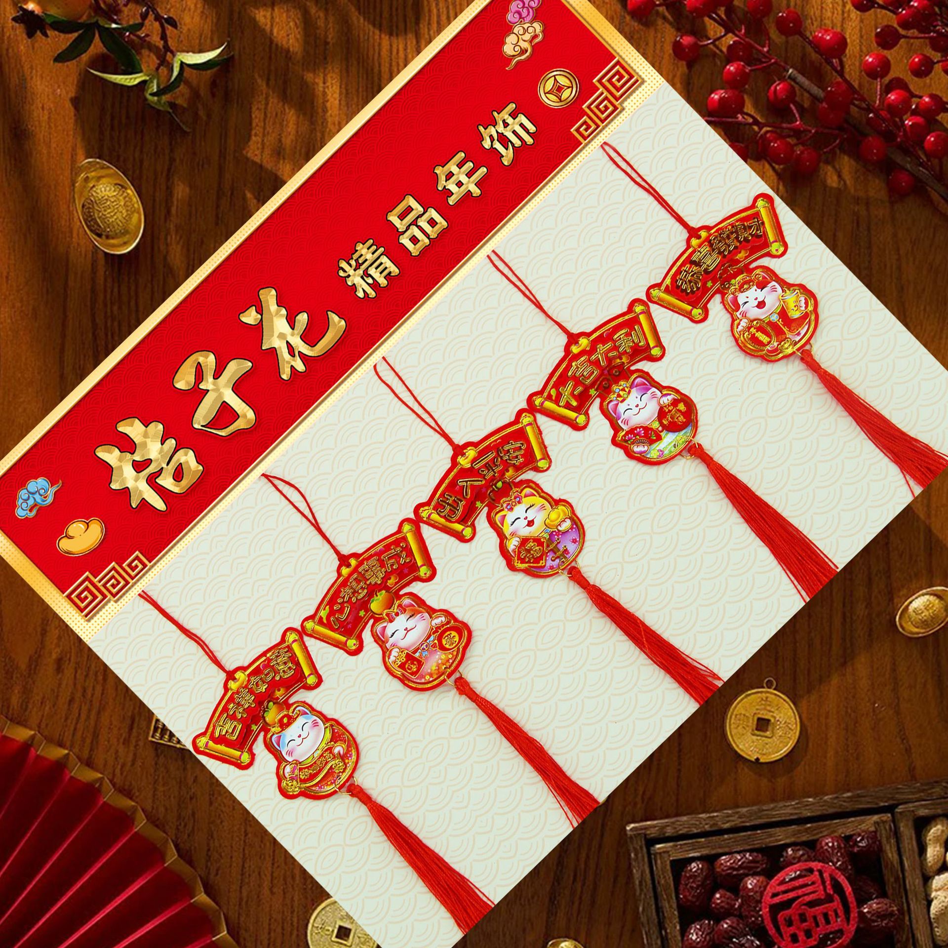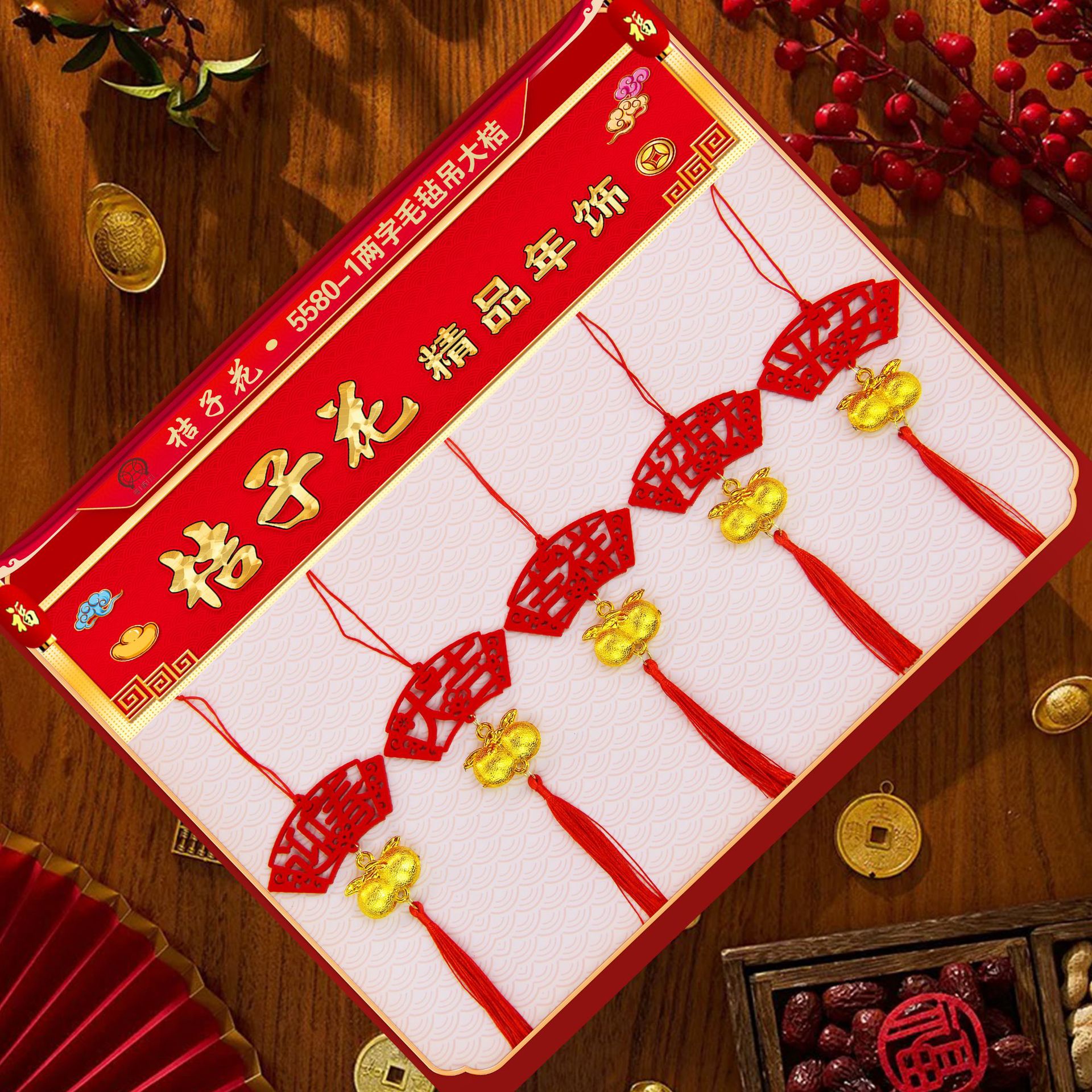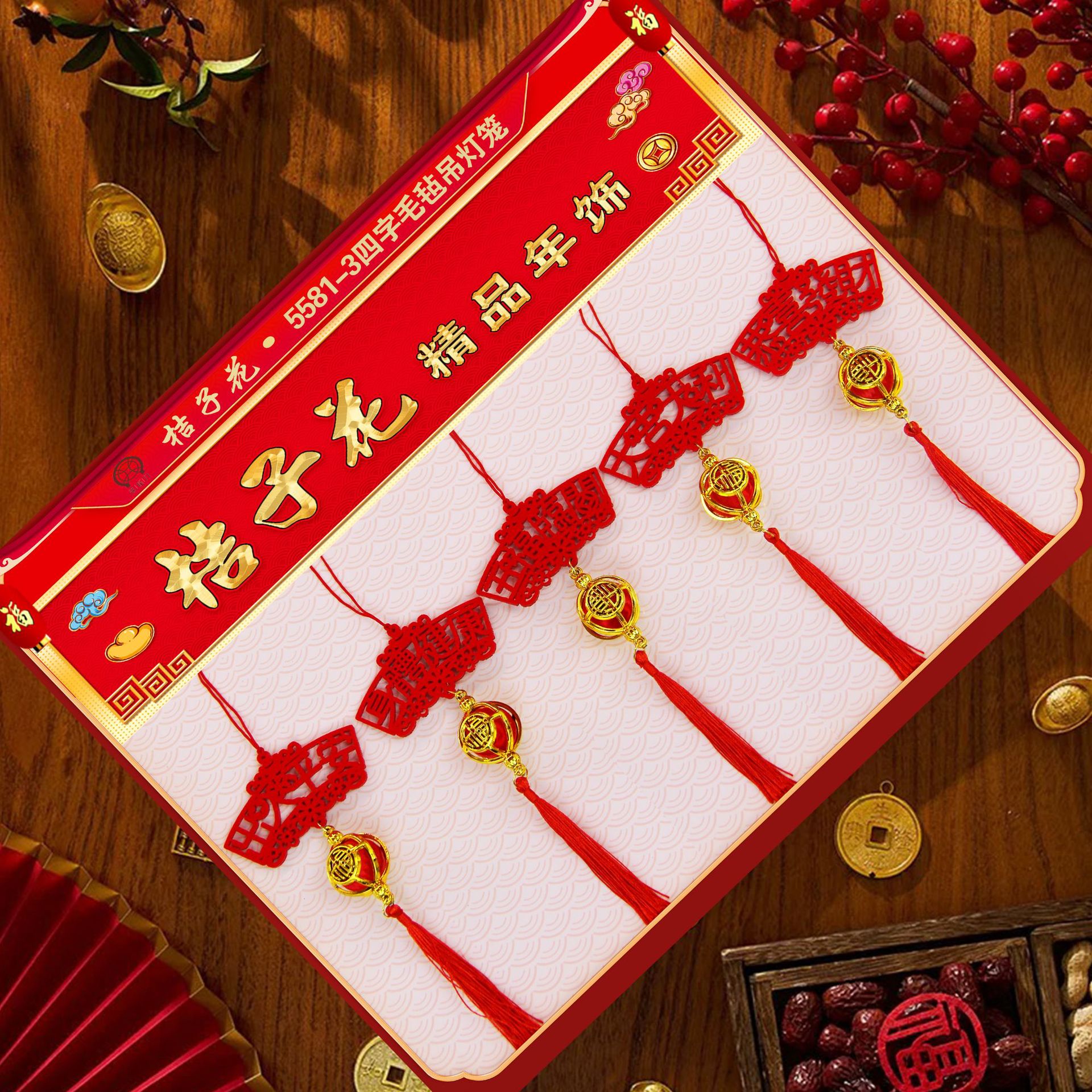 2025新年装饰挂件盆栽春节小挂饰过年吊灯笼盆景挂件桔子花小银柳