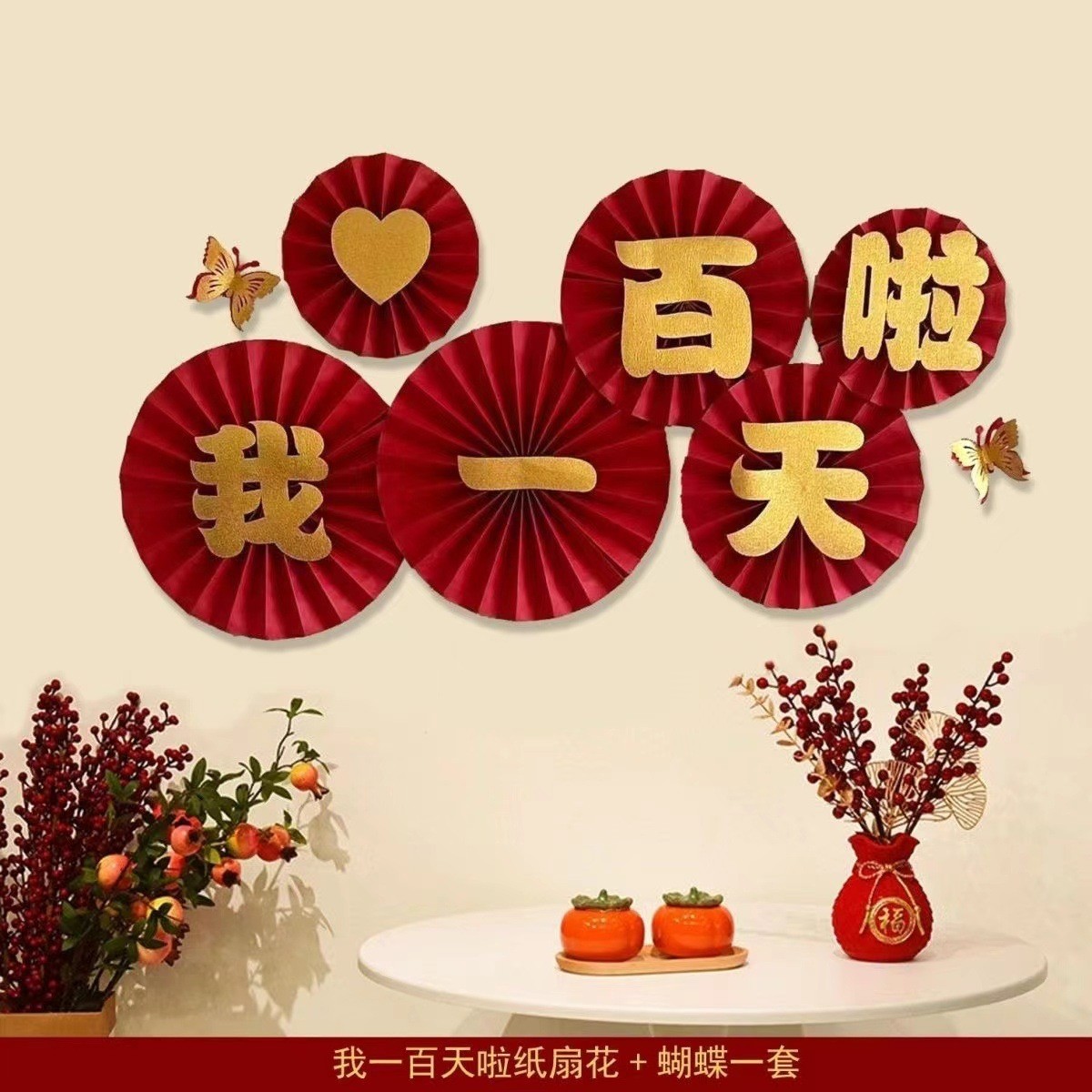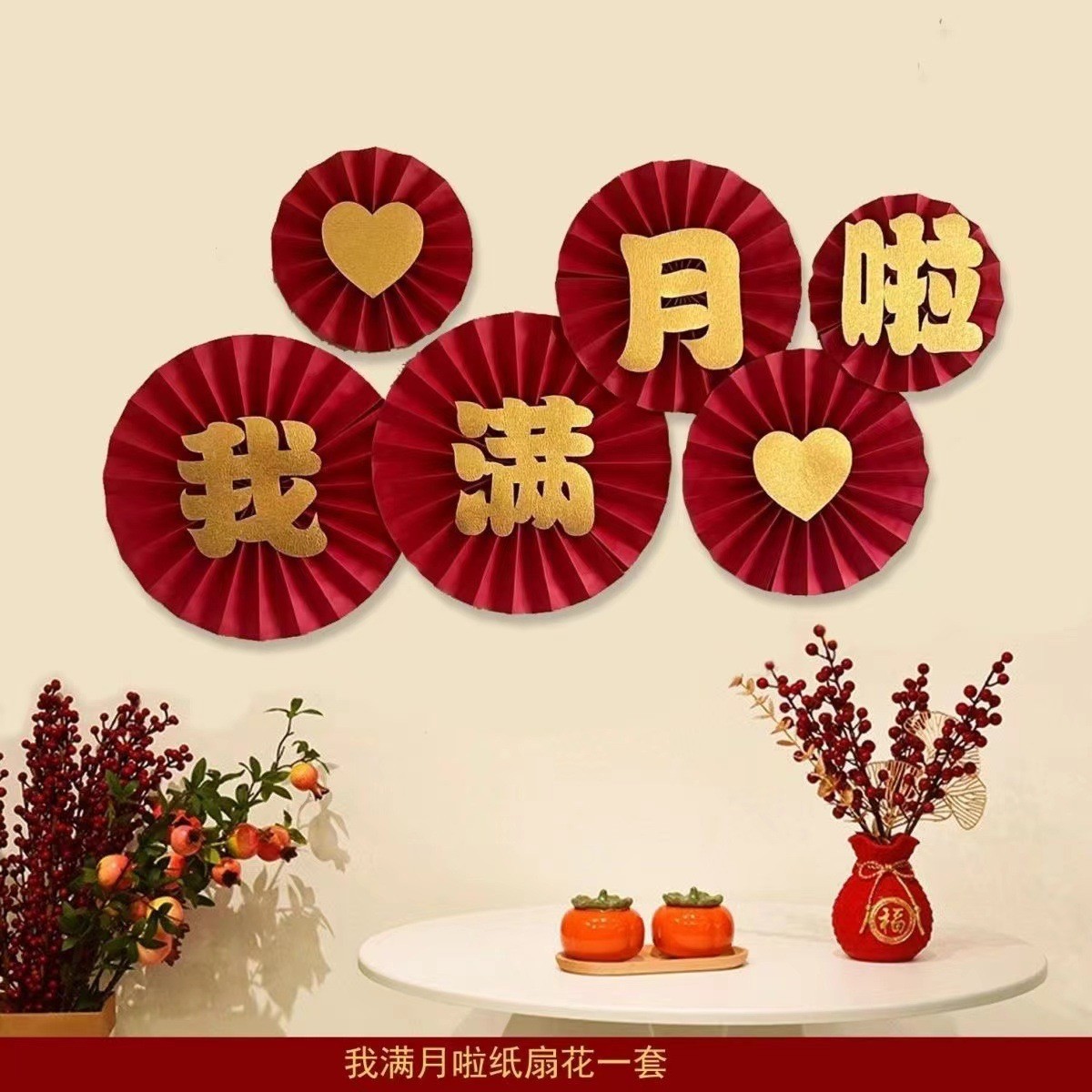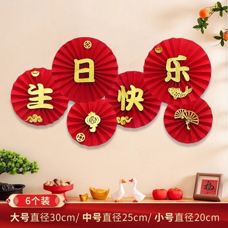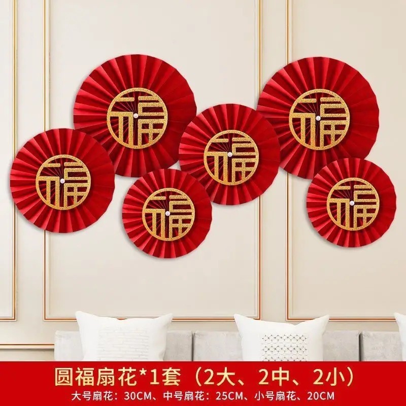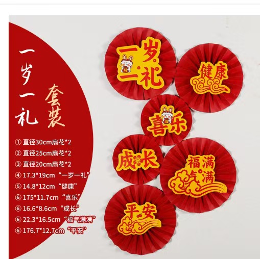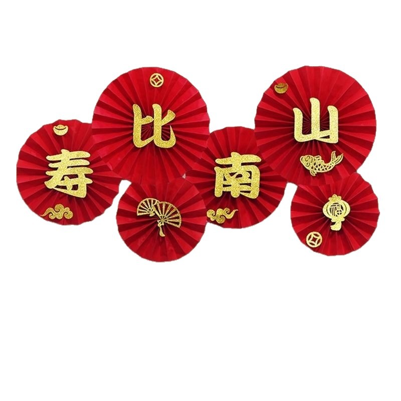 2026新年元旦装饰品纸扇花马年过年挂件春节生日醒狮周岁抓阄挂饰