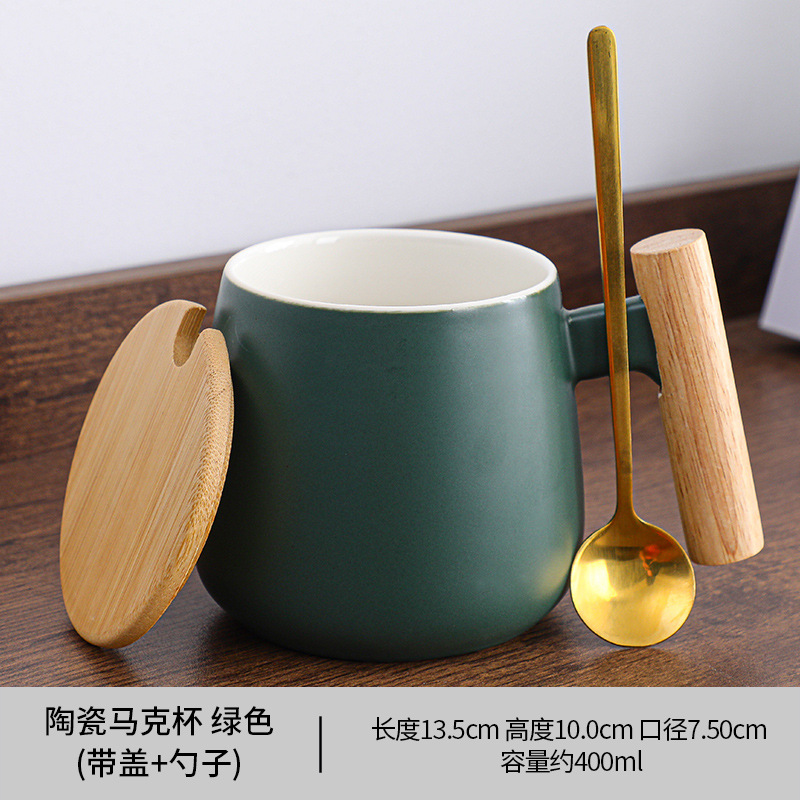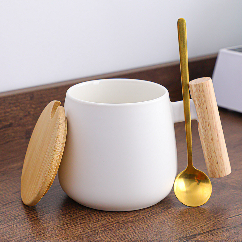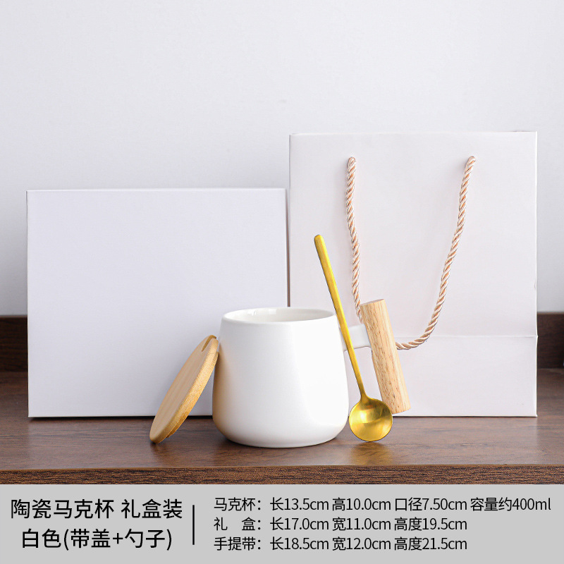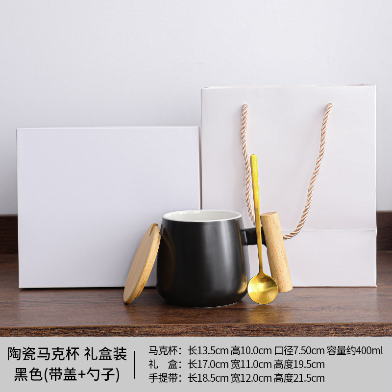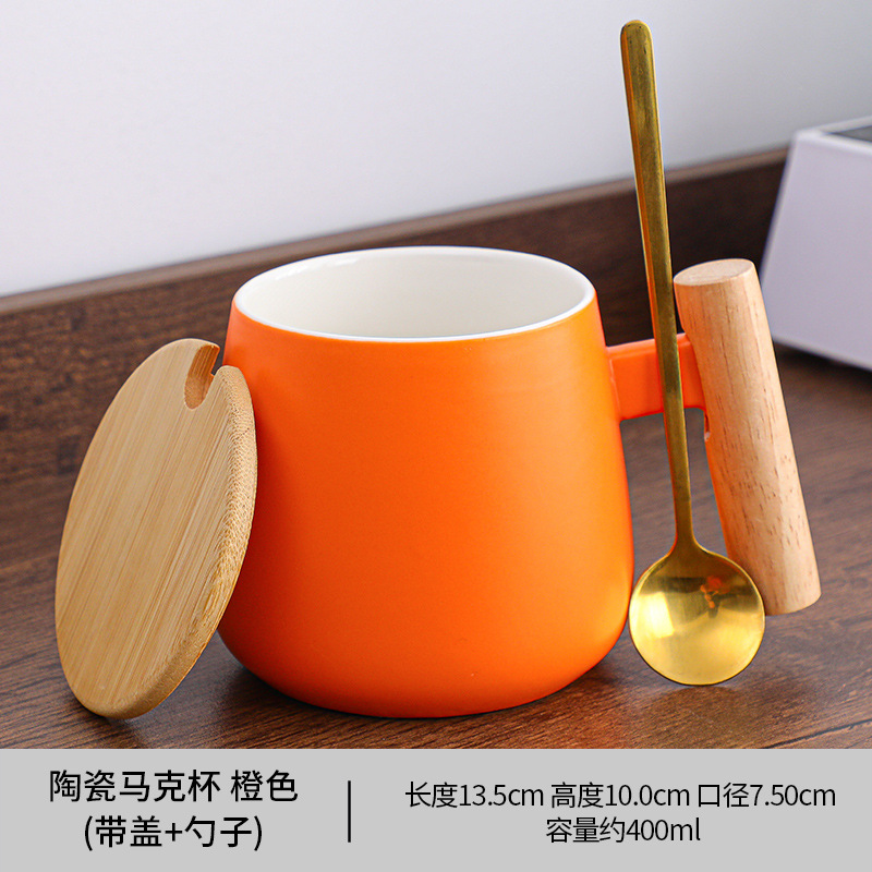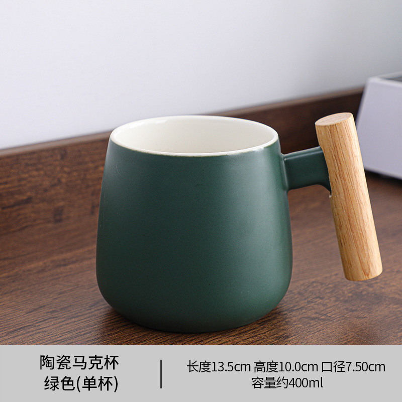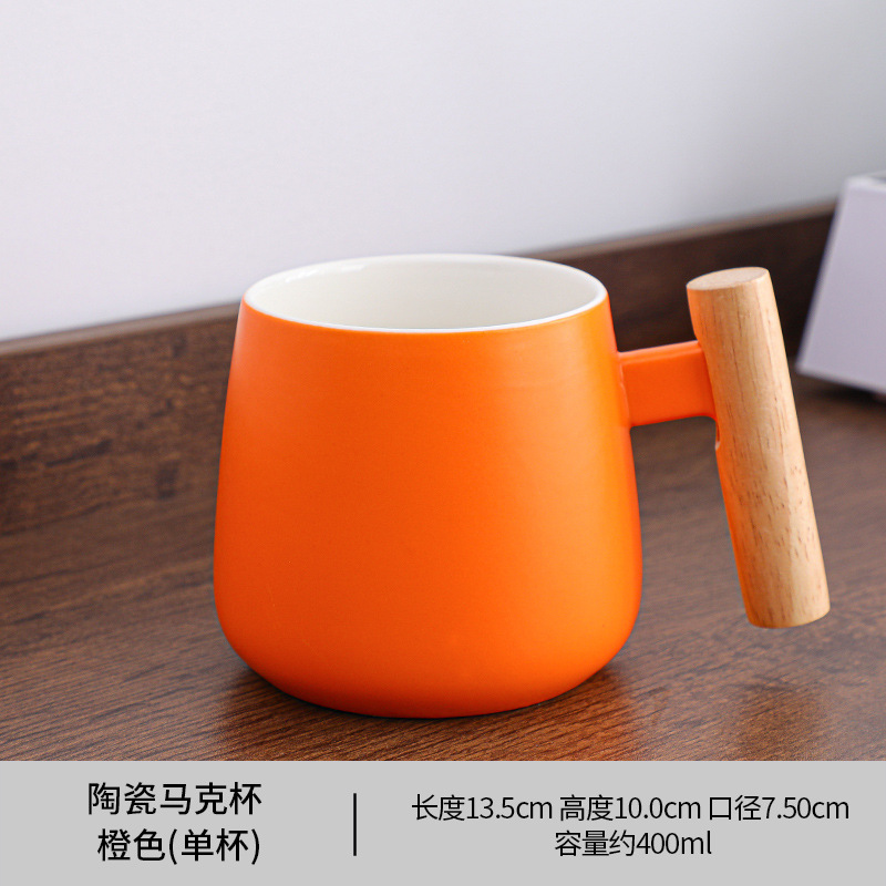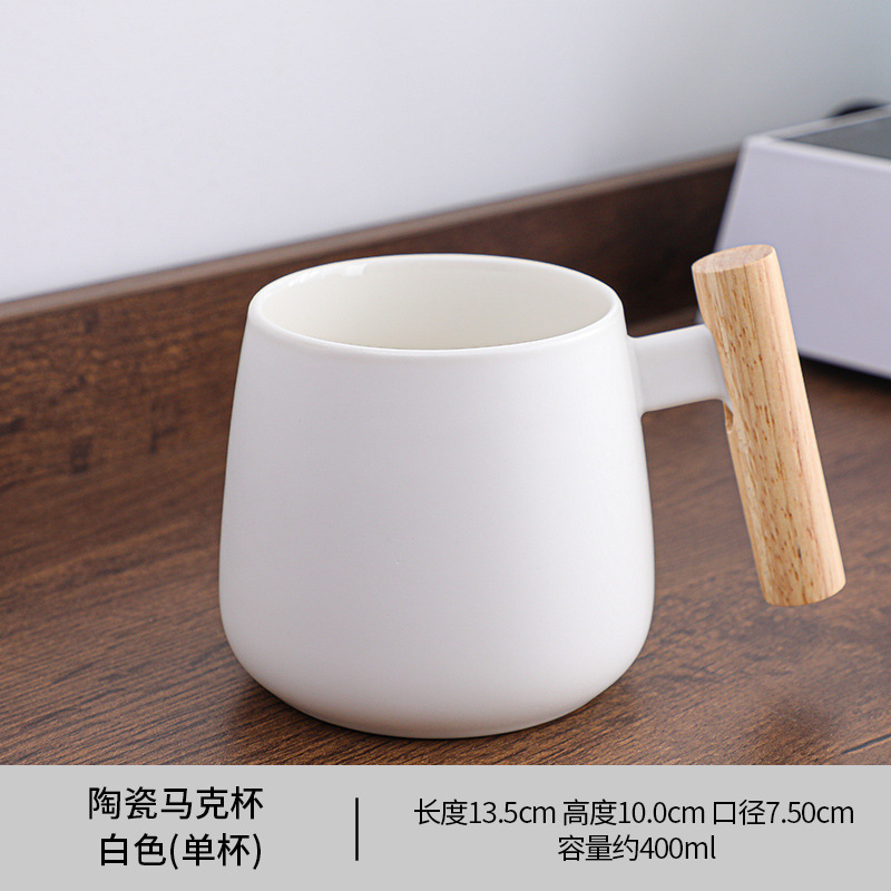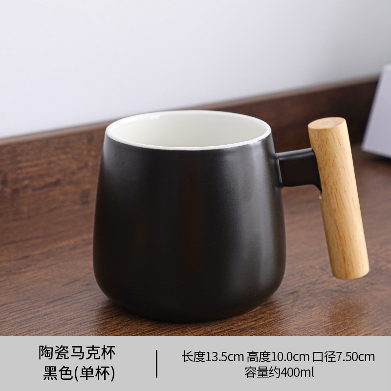 热卖创意情侣杯子 木柄陶瓷杯茶水马克杯 个性咖啡杯礼品套装礼盒