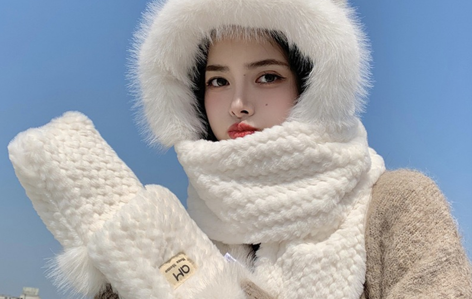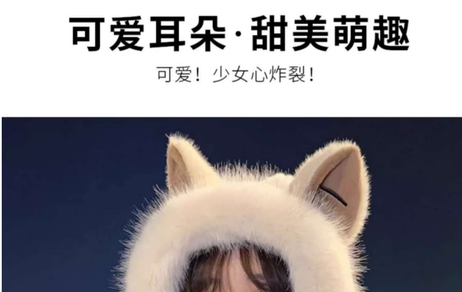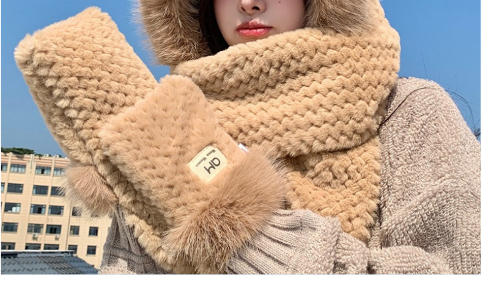 帽子女冬季围巾手套一体帽狐狸耳朵防寒保暖毛绒帽可爱百搭套头帽