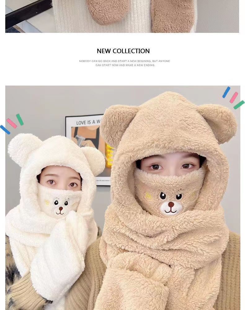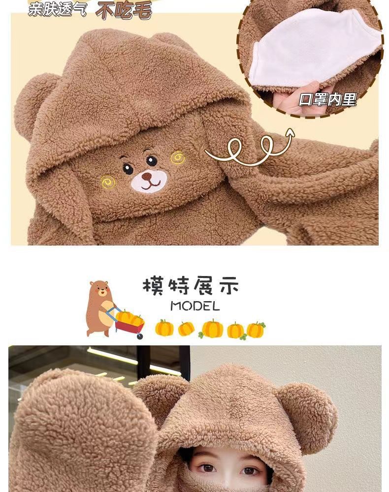 【保暖五合一】冬季成人连体帽加绒加厚可爱小熊一体口罩帽保暖帽